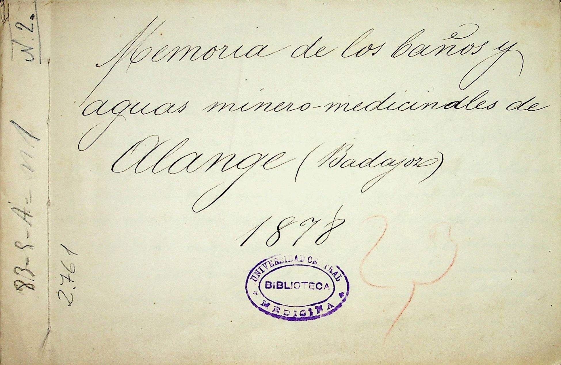 Memoria de los baños y aguas mínero-medicinales de Alange (Badajoz) : 1878 :