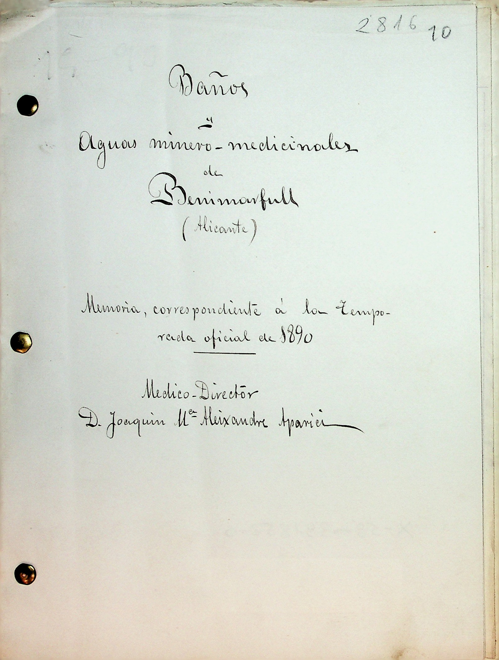 Baños y aguas minero-medicinales de Benimarfull (Alicante) : memoria correspondiente á la temporada oficial de 1890