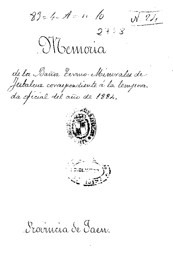 Memoria de los baños termo-minerales de Jabalcuz, provincia de Jaen, correspondiente á la temporada oficial del año de 1884