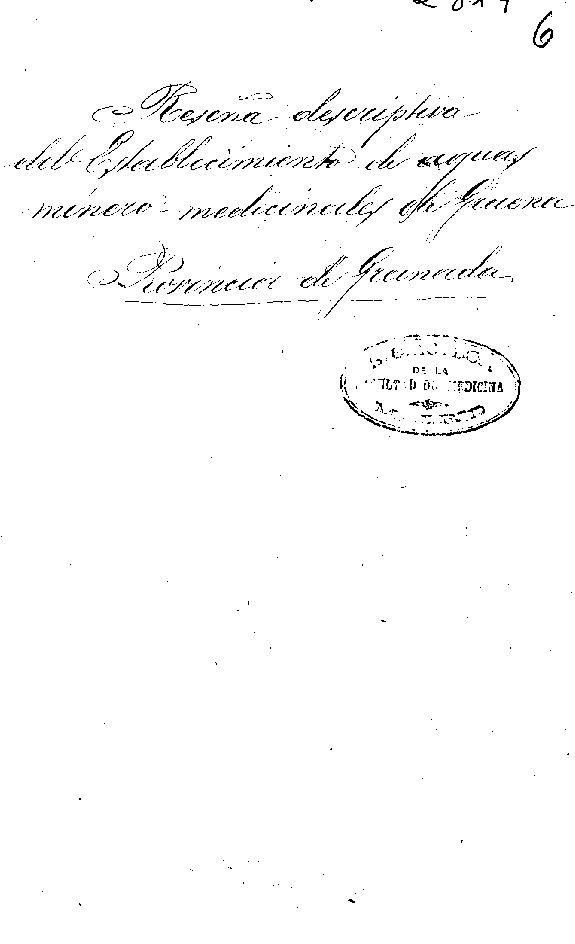Reseña descriptiva del establecimiento de aguas minero medicinales de Graena, provincia de Granada