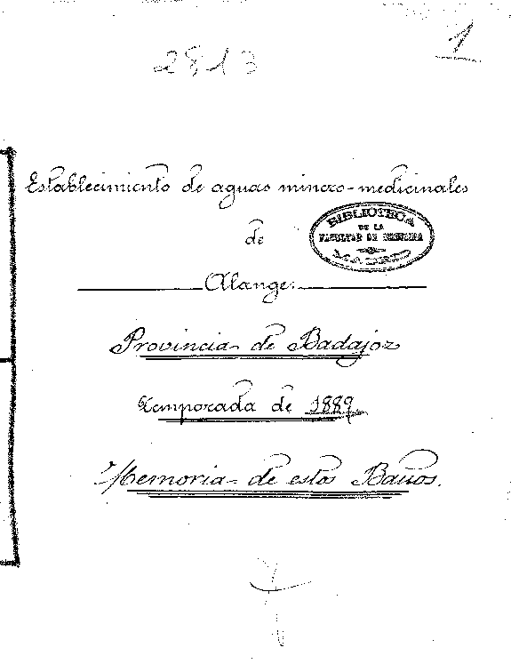 Establecimiento de aguas minero-medicinales de Alange : Provincia de Badajoz : Temporada de 1889 : Memoria de estos baños