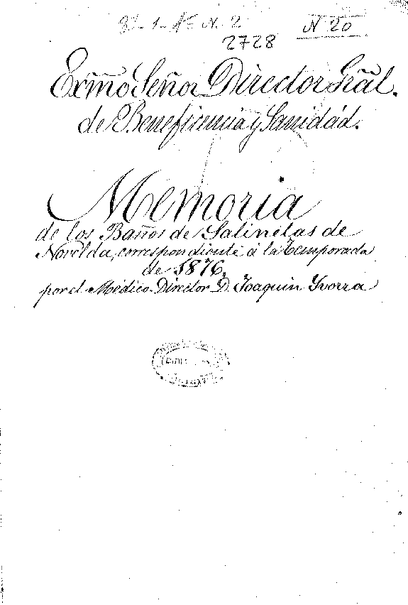 Memoria de los baños de Salinetas de Novelda, correspondiente a la temporada de 1876
