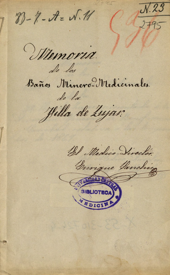 Memoria de los baños minero-medicinales de la Villa de Zujar, presentada á la Direccion General de Beneficencia y Sanidad, relativa á las temporadas de 1869