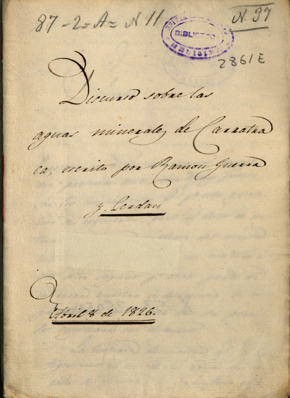 Discurso sobre las aguas minerales de Carratraca, escrito por Ramon Guerra y Cerdan, abril 8 de 1826