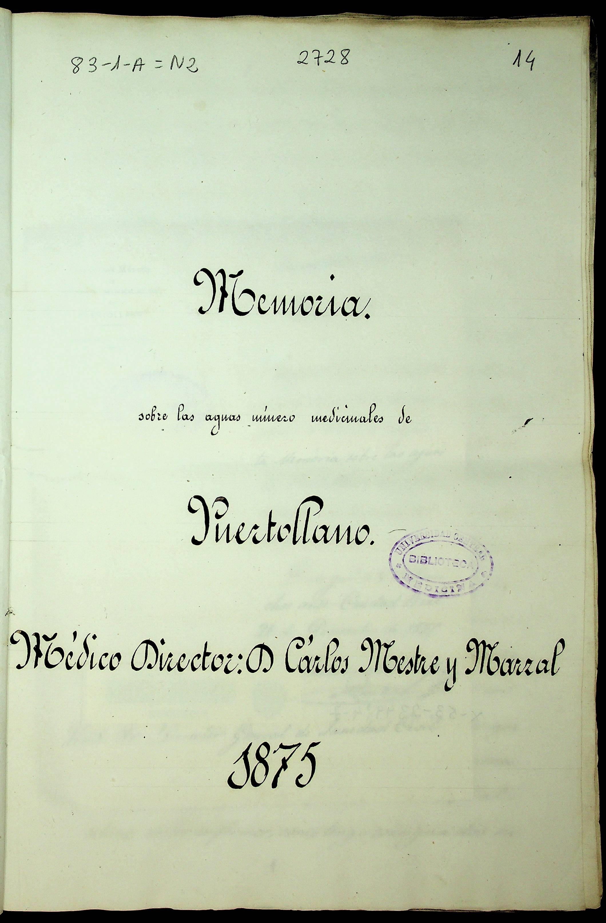 Memoria sobre las aguas mínero medicinales de Puertollano