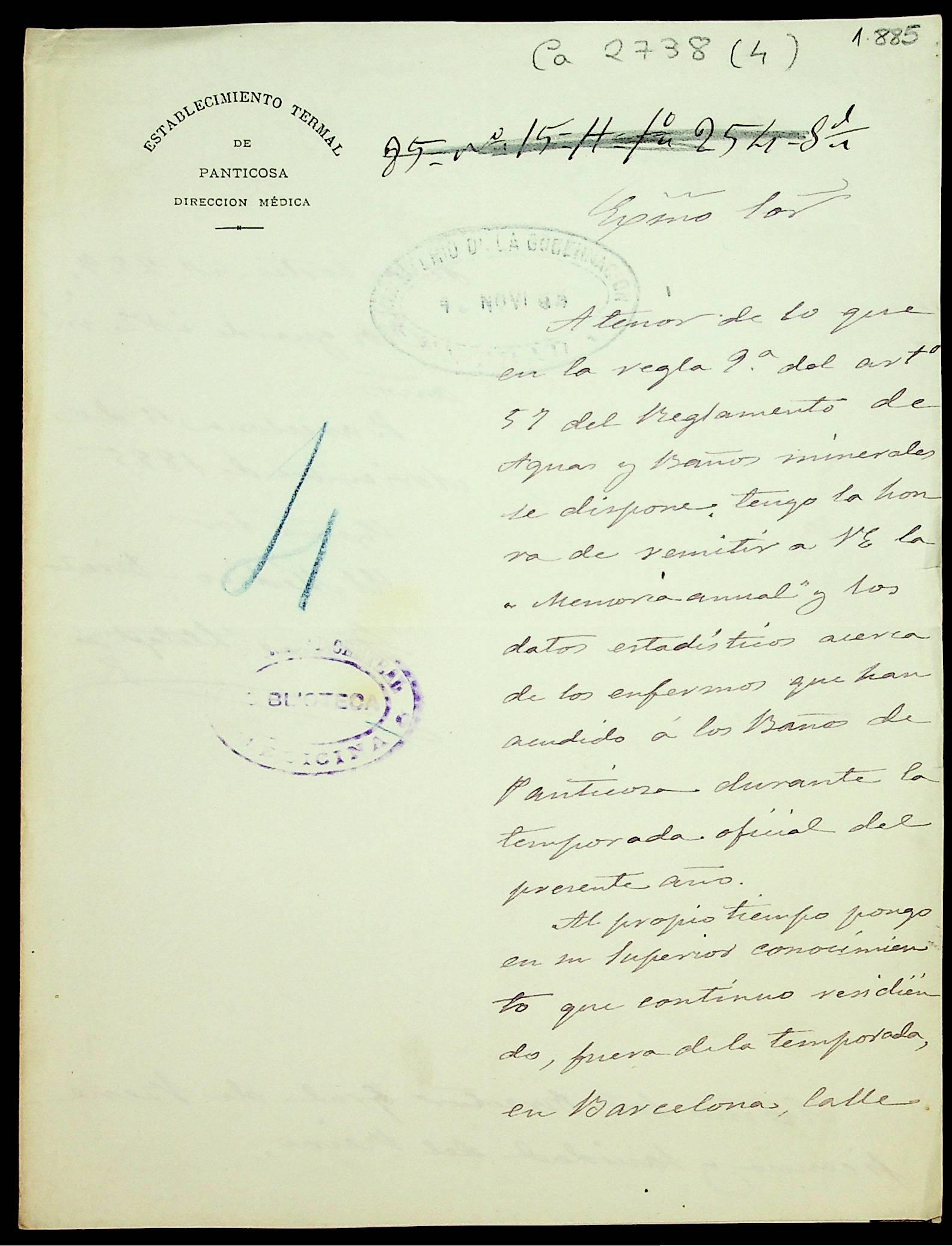 Memoria relativa á los establecimientos balnearios de Paracuellos de Giloca, temporada de 1885