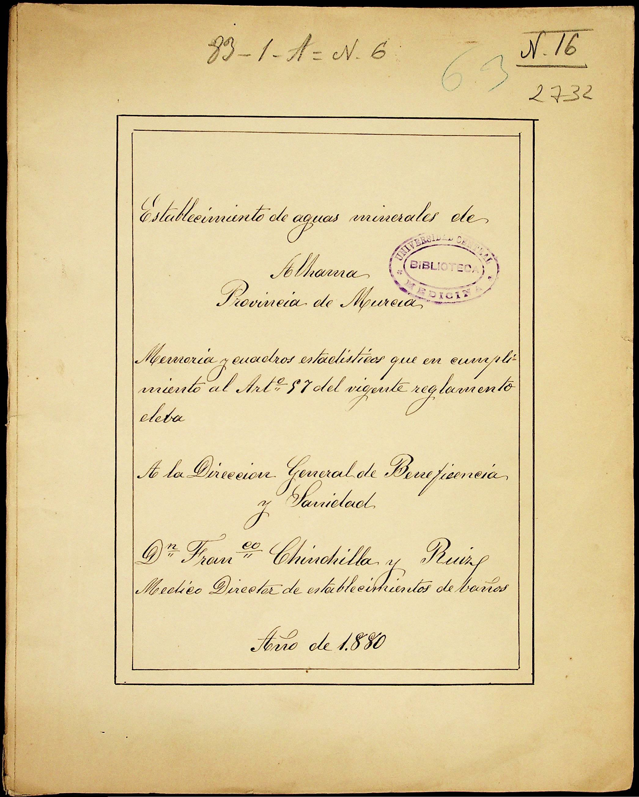 Establecimiento de aguas minerales de Alhama, provincia de Murcia : Memoria y cuadros estadisticos que en ... : año 1880