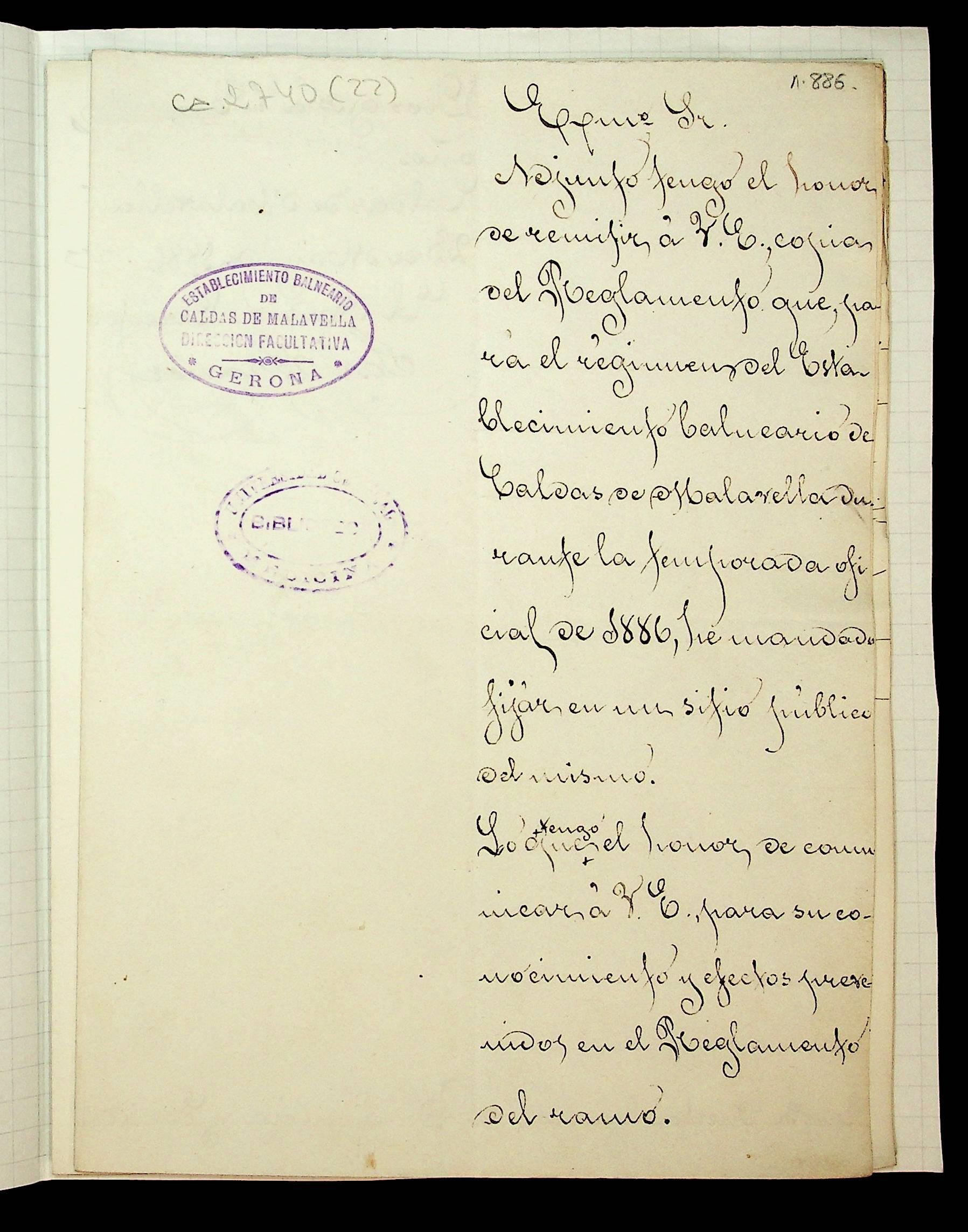 Reglamento interior para el régimen del establecimiento balneario de Caldas de Malavella : temporada oficial de 1886