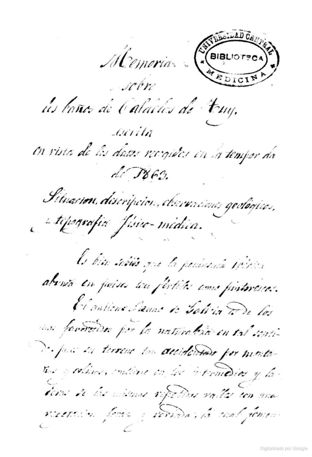 Memoria sobre los baños de Caldelas de Tuy, escrita en vista de los datos recogidos en la temporada de 1863