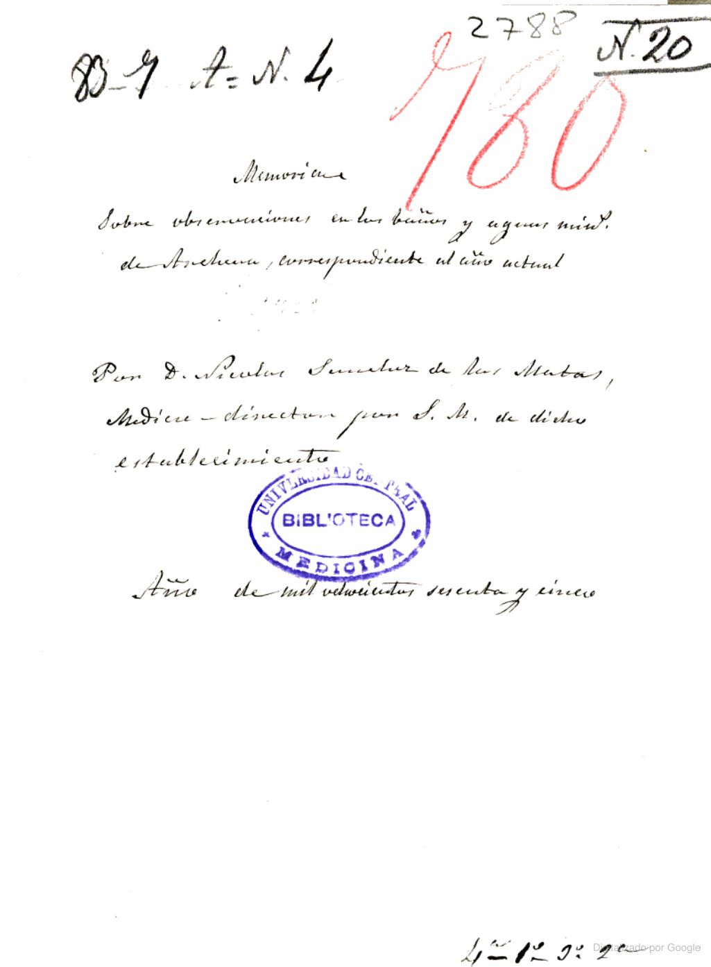Memoria sobre observaciones en los baños y aguas mins. de Archena, correspondiente al año actual