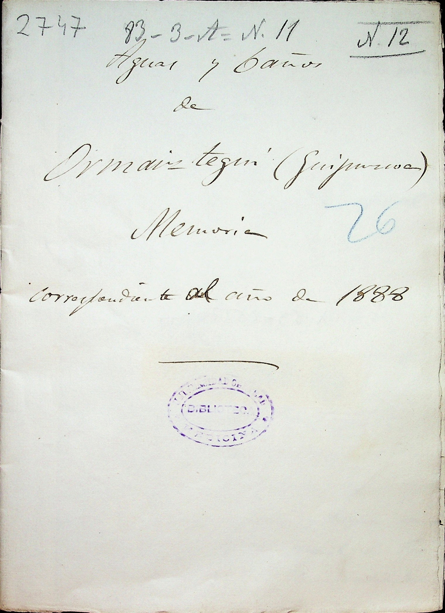Aguas y baños de Ormaiztegui (Guipuzcoa) : memoria correspondiente al año de 1888