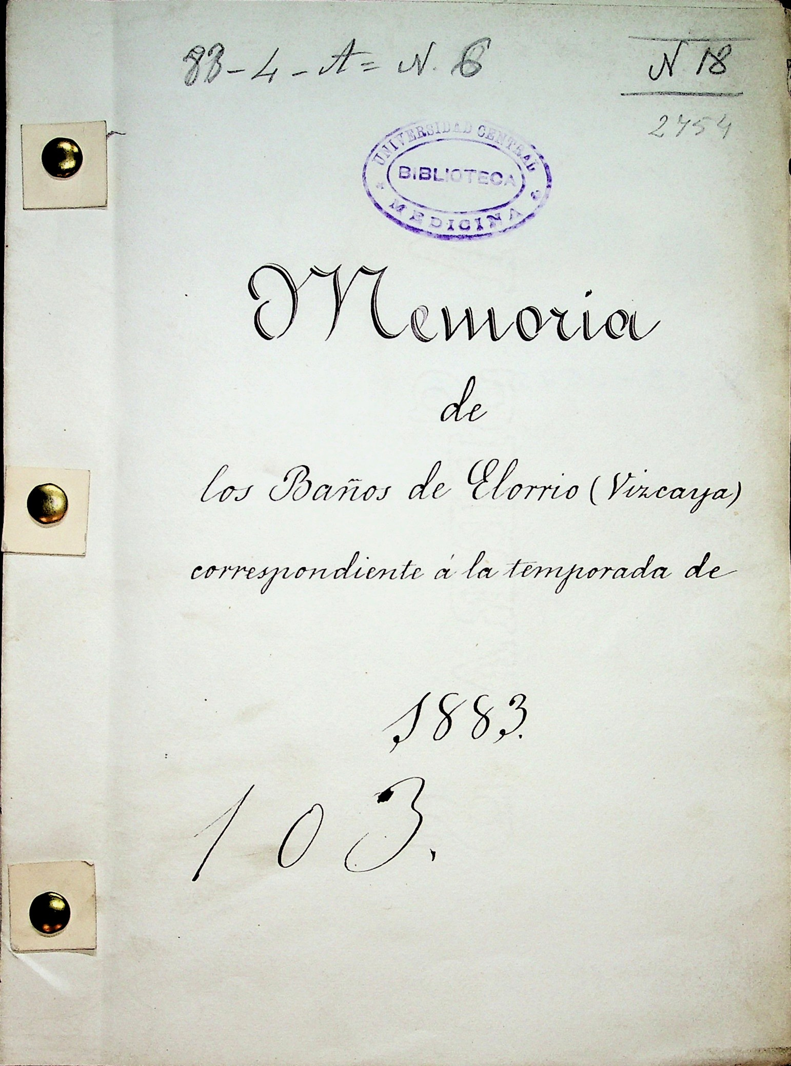 Memoria de los baños de Elorrio (Vizcaya), correspondiente á la temporada de 1883