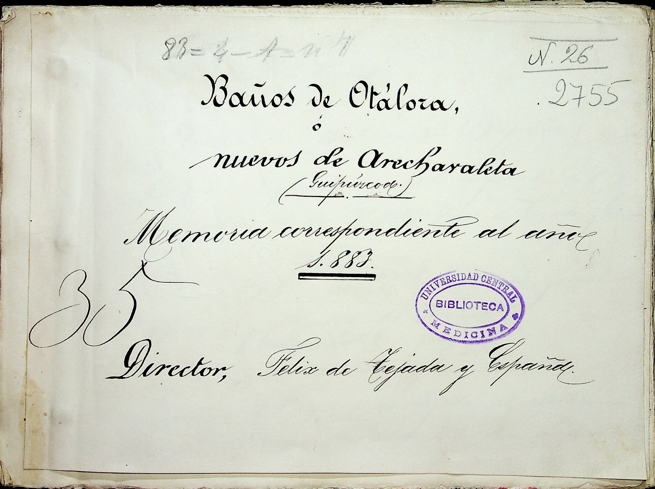 Baños de Otálora, ó nuevos de Arechavaleta (Guipúzcoa) : memoria correspondiente al año 1883