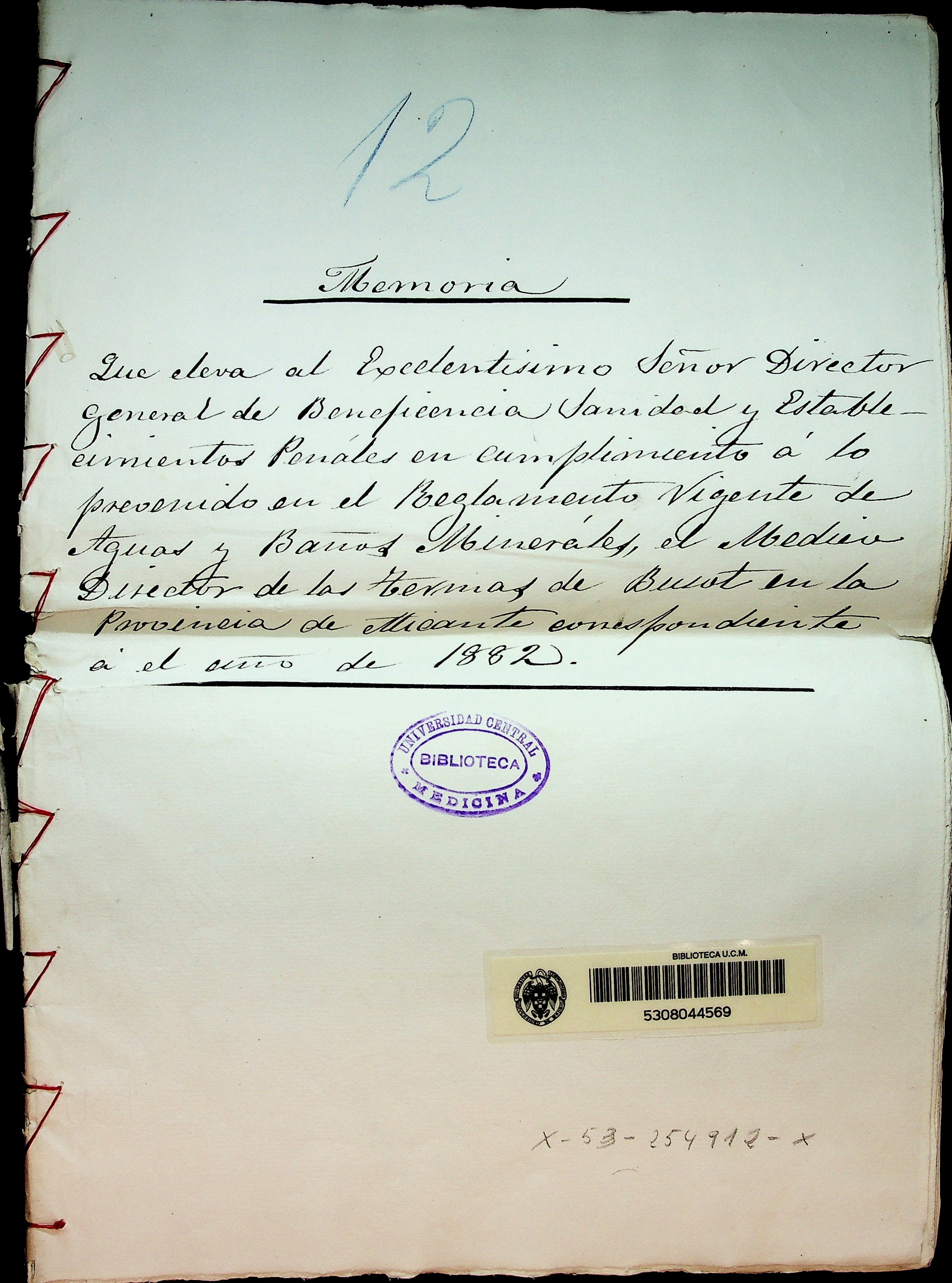 Memoria que eleva... el medico director de las termas de Busot, en la provincia de Alicante, correspondiente á el año de 1882