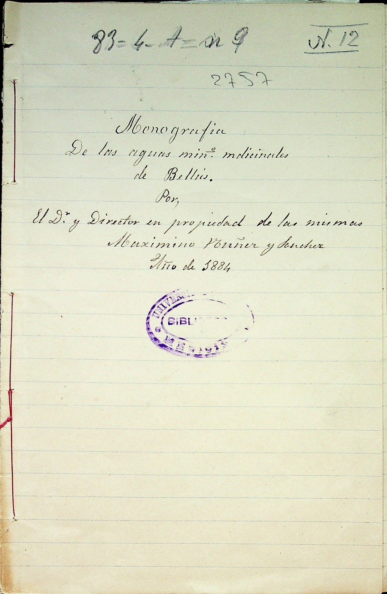 Monografía de las aguas minero medicinales de Bellús
