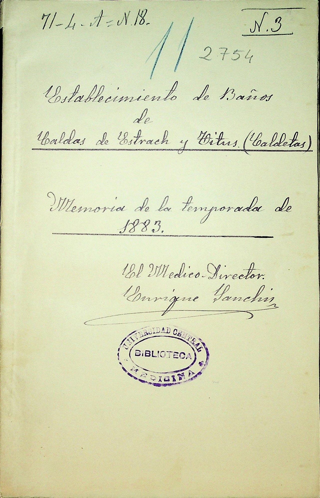 Establecimiento de baños de Caldas de Estrach y Titus (Caldetas) : memoria de la temporada de 1883