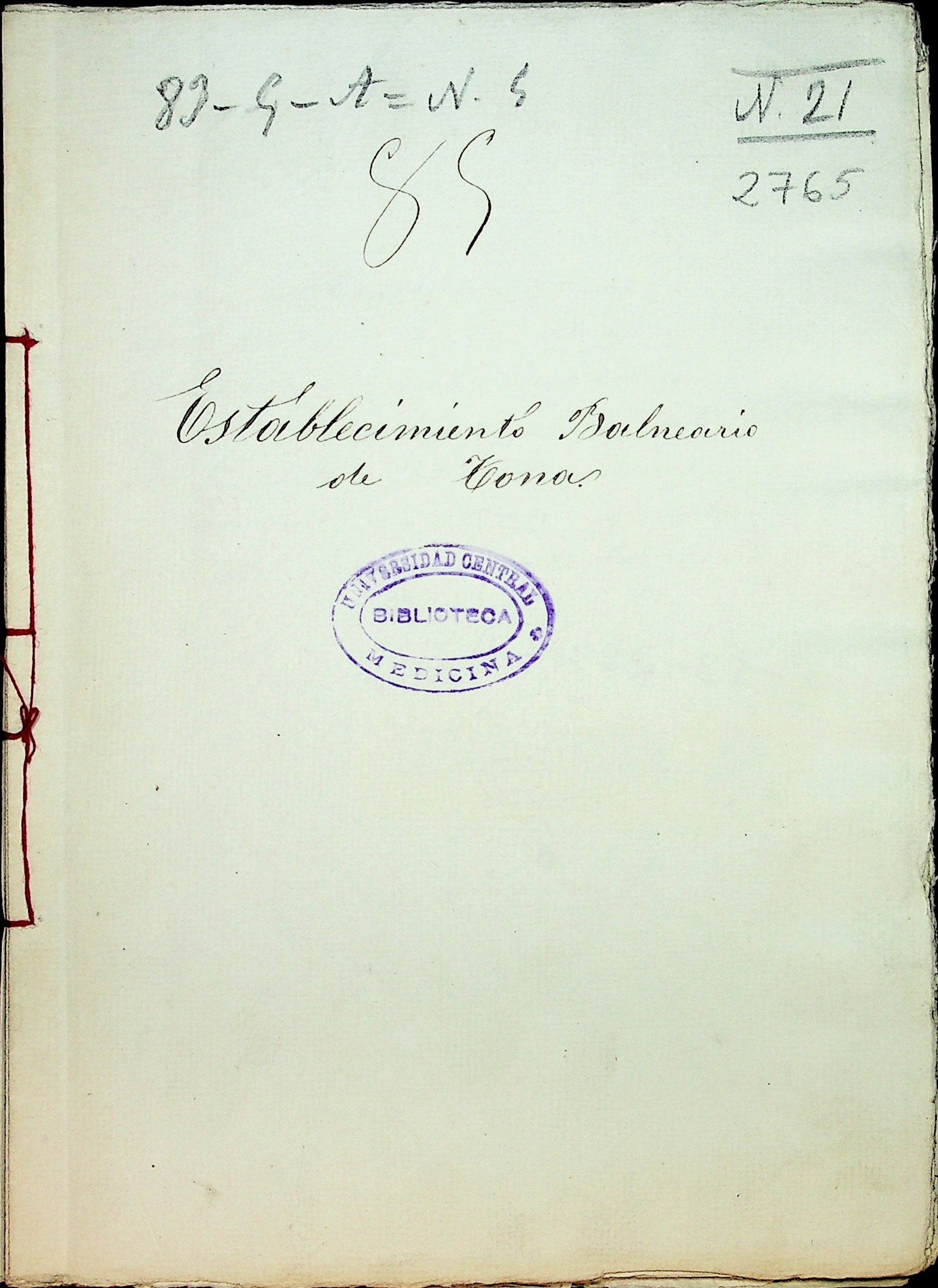 Memoria que con arreglo á lo dispuesto en el articulo 57 del Reglamento de aguas minerales eleva al Exmo. Sr. Director Gral de beneficiencia y Sanidad, el Médico-director interino del establecimiento balneario de Tona José Molins