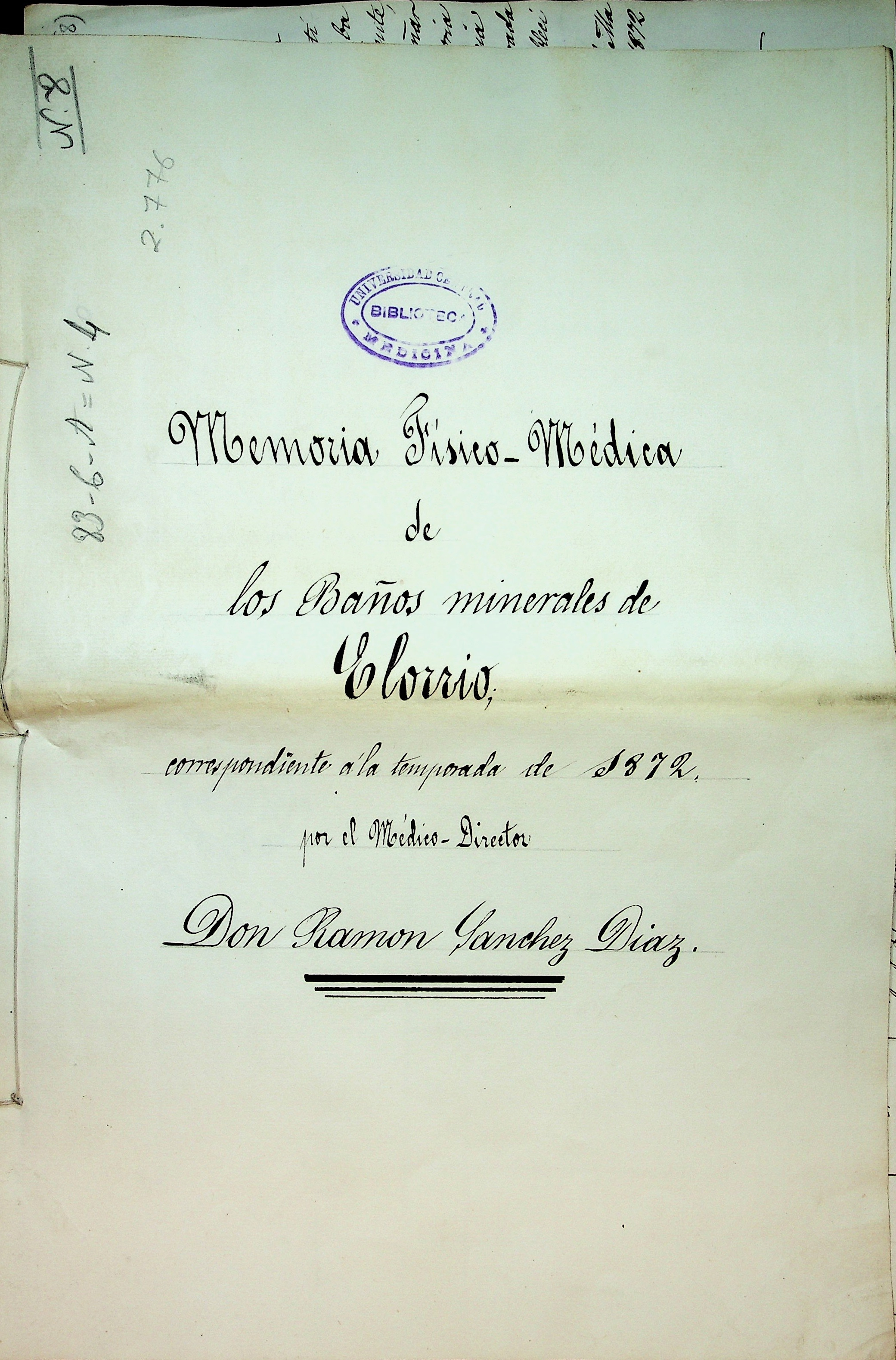 Memoria fisico-medica de los Baños minerales de Elorrio correspondiente á la temporada de 1872
