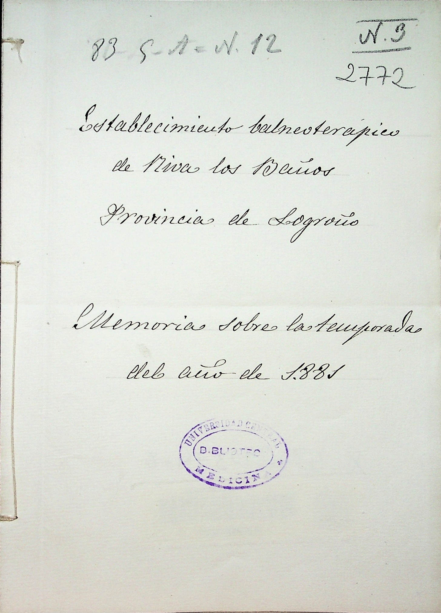 Establecimiento balneoterápico de Riva los Baños, provincia de Logroño : memoria sobre la temporada del año de 1881