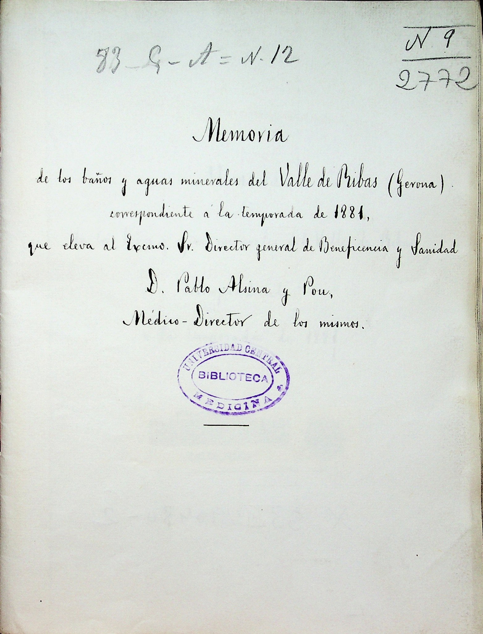 Memoria de los baños y aguas minerales del Valle de Ribas (Gerona) correspondiente á la temporada de 1881