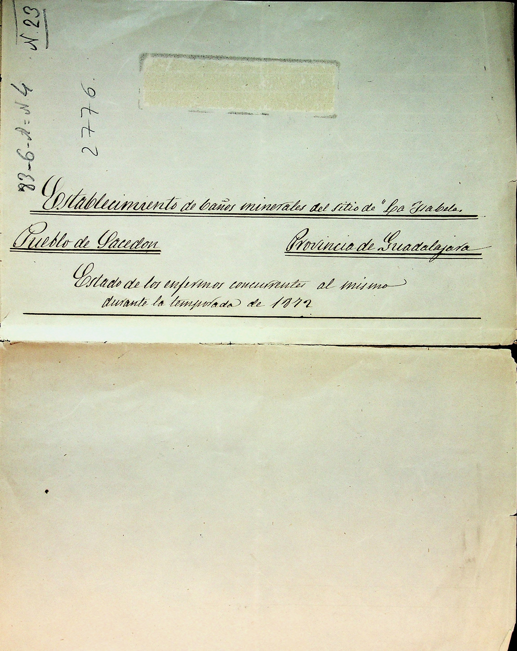 Establecimiento de baños minerales del sitio de "La Isabela", Pueblo de Sacedon, provincia de Guadalajara : estado de los enfermos concurrentes al mismo durante la temporada de 1872