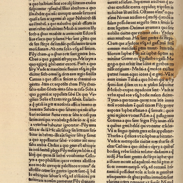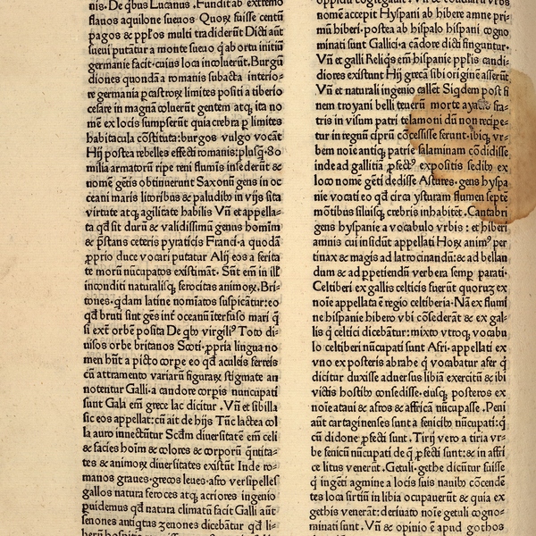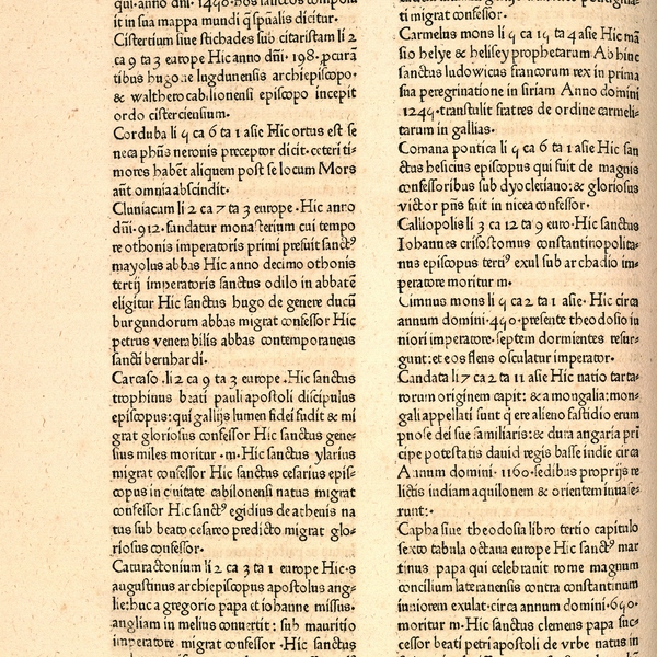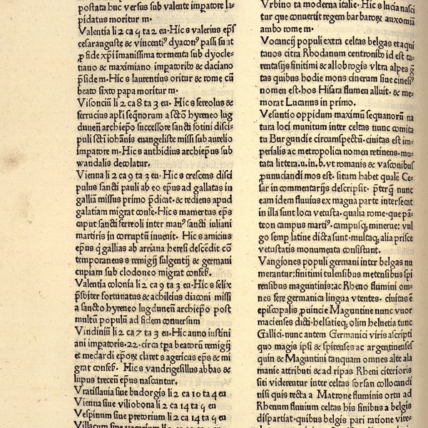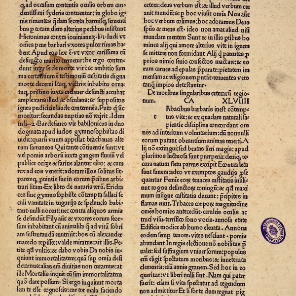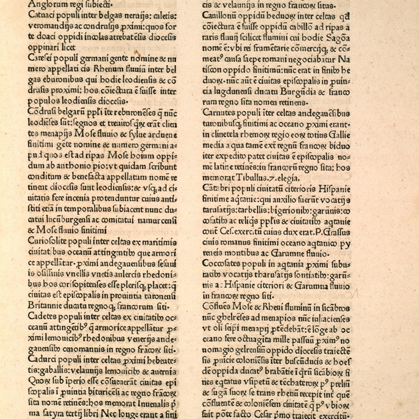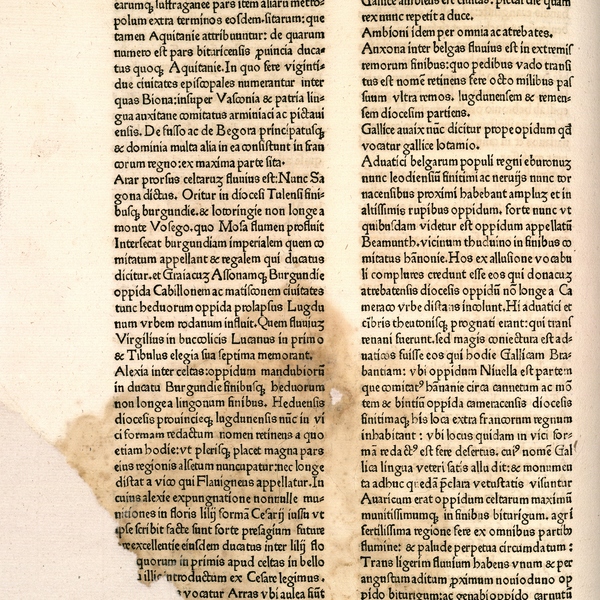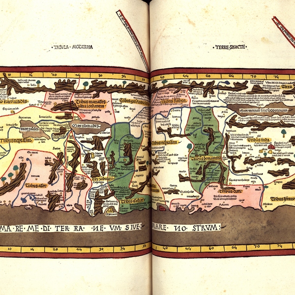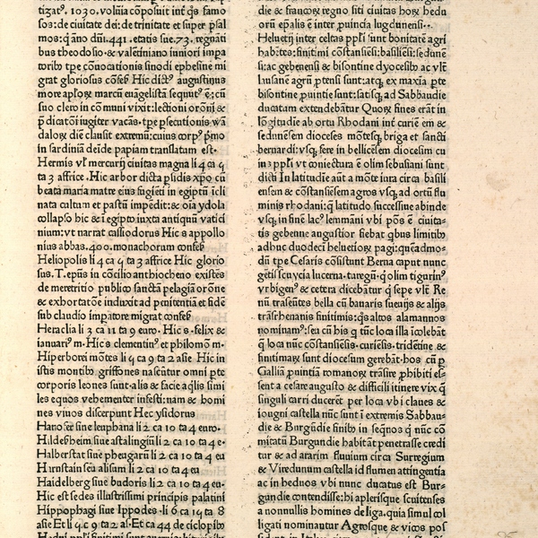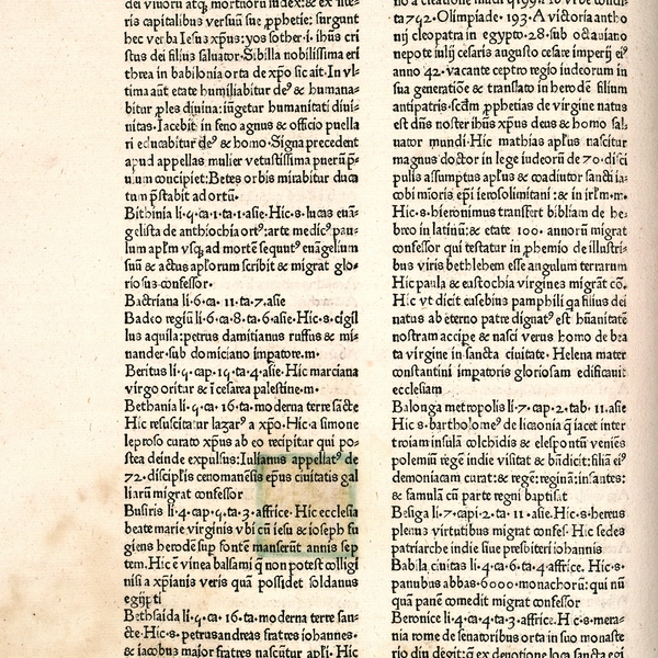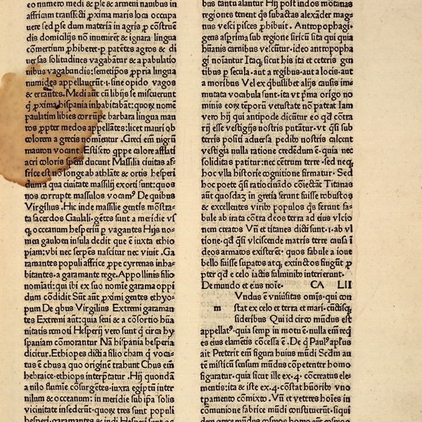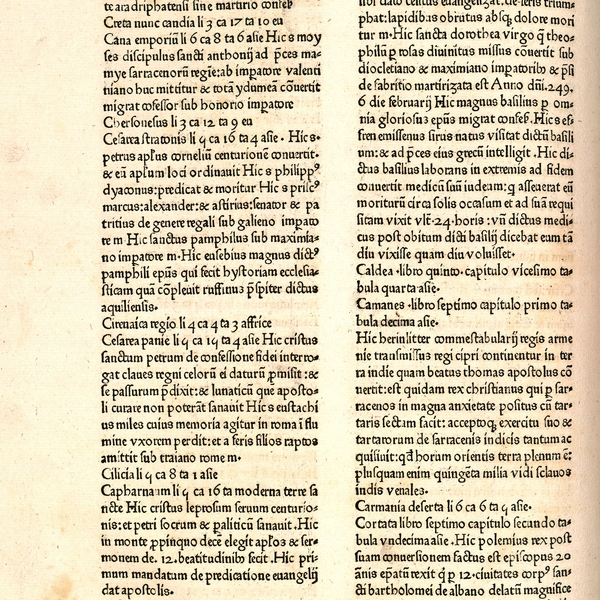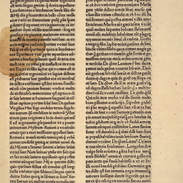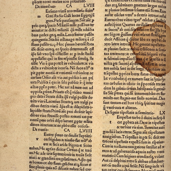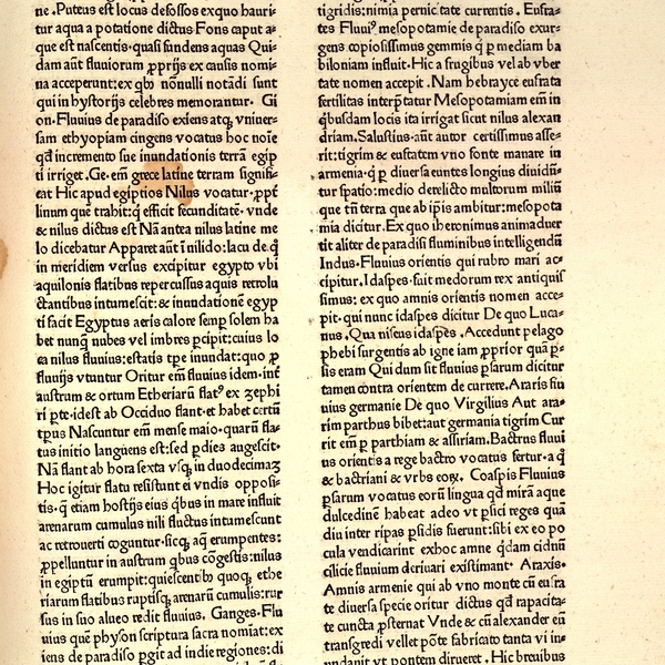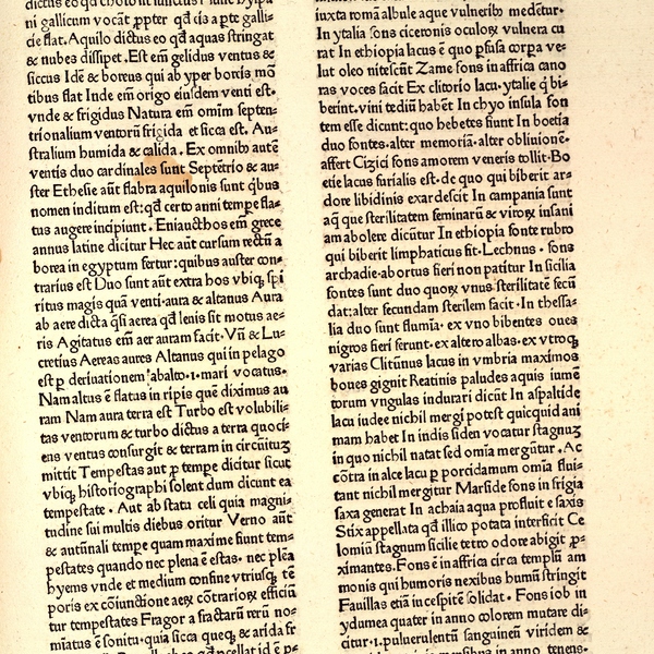 - Ex-libris ms. del Colegio Imperial de la Compañía de Jesús de Madrid. Ingresó en la Biblioteca Histórica procedente de la Facultad de Filología en 2000. Falta la última hoja, sustituida por copia ms. Se inicia con “Registrum alphabeticum super octo libro a Ptolomei incipit feliciter” cuyas primeras cuatro hojas restauradas, presentan pérdida de texto. A continuación el texto de Ptolomeo con 32 mapas. Los cinco mapas modernos aparecen intercalados entre los 26 de Ptolomeo, a continuación del correspondiente al que moderniza: en Europa: Tabula Moderna Hispanie, entre 2 y 3, Tabula Moderna Francie, entre 3 y 4, Tabula Moderna Italie, entre 6 y 7, y Tabula Moderna Prussie, Livonie, Norbegie et Gotcie, entre 8 y 9; en Asia Tabula Moderna Terre Sancte, entre 4 y 5. Al final incluye “De locis ac mirabilibus mundi” (signaturas a-b8, c10), con la particularidad de que el último cuadernillo de esta serie c-10 está intercalado entre los B-8 y C-8 del “Registrum alphabeticum super octo libro a Ptolomei incipit feliciter”. Los grabados xilográficos (mapas e iniciales) están coloreados a mano. Encuadernación de piel vuelta. Cortes dorados y cincelados, con restos de dos iniciales y un escudo en colores.