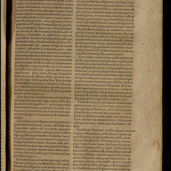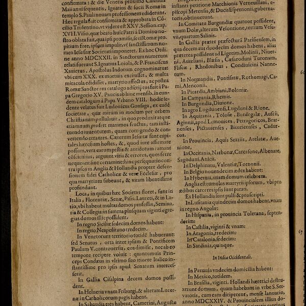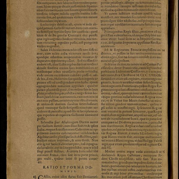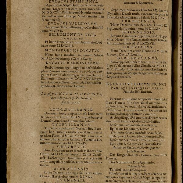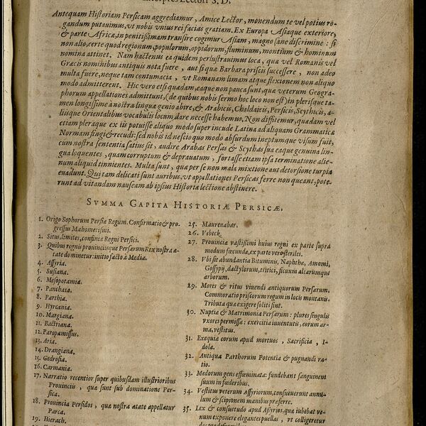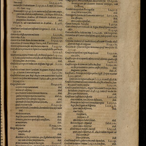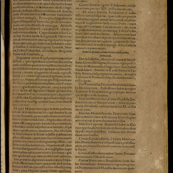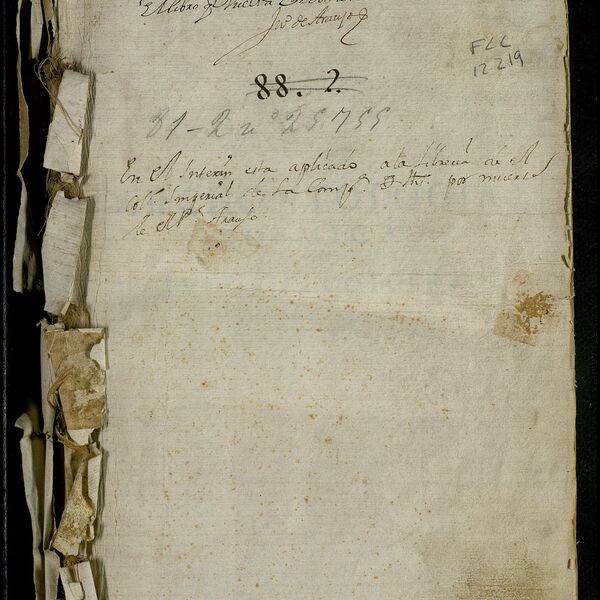 - Ex libris ms. de P.o de Buendía, del P.e jesuita Araujo y de la Librería del Colegio Imperial de la Compañía de Jesús de Madrid en la hoja de guarda. - Ex libris ms. de la Biblioteca del Colegio de S. Ildephonsi (de Alaclá de Henares) en el frontispicio. - Frontispicio con banderilla que cubre y repite los datos de publicación. - Ingresó en la Biblioteca Histórica procedente de la Facultad de Filología en 2000. - Falto de la encuadernación.