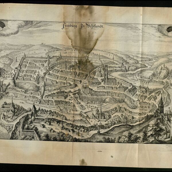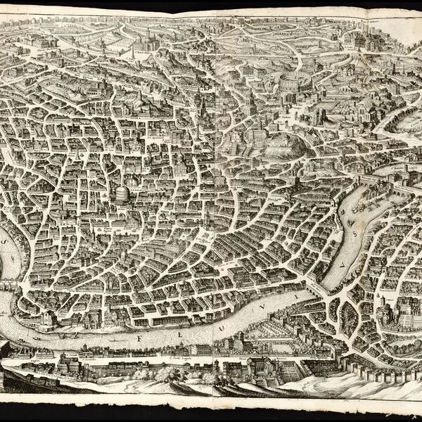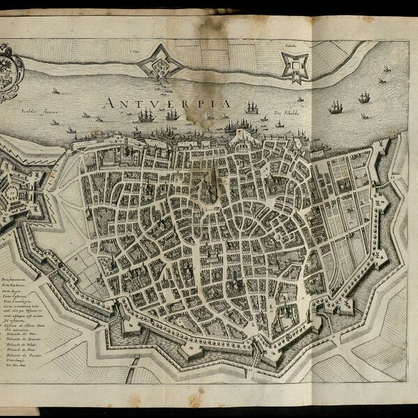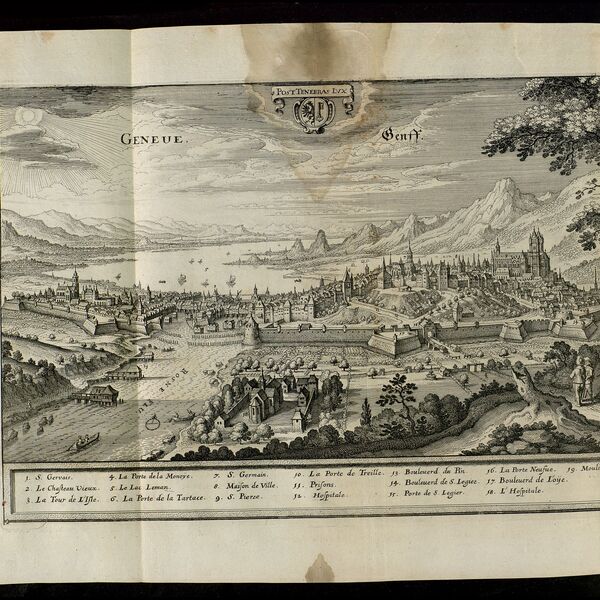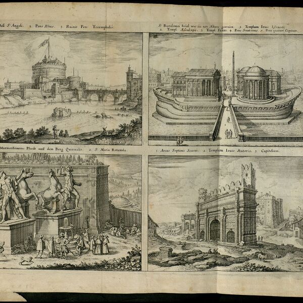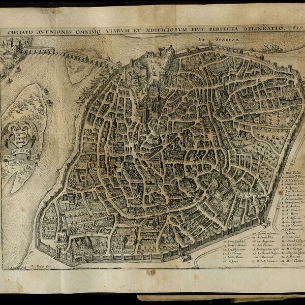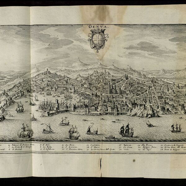 - Nota a la descripción física: Las h. de grab. pleg. son mapas calcográficos de ciudades europeas