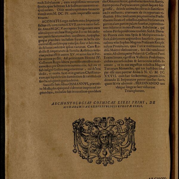 - Archontologia cosmica, siue imperiorum, regnorum, principatuum, rerumque publicarum omnium per totum, terrarum orbem commentarii luculentissimi