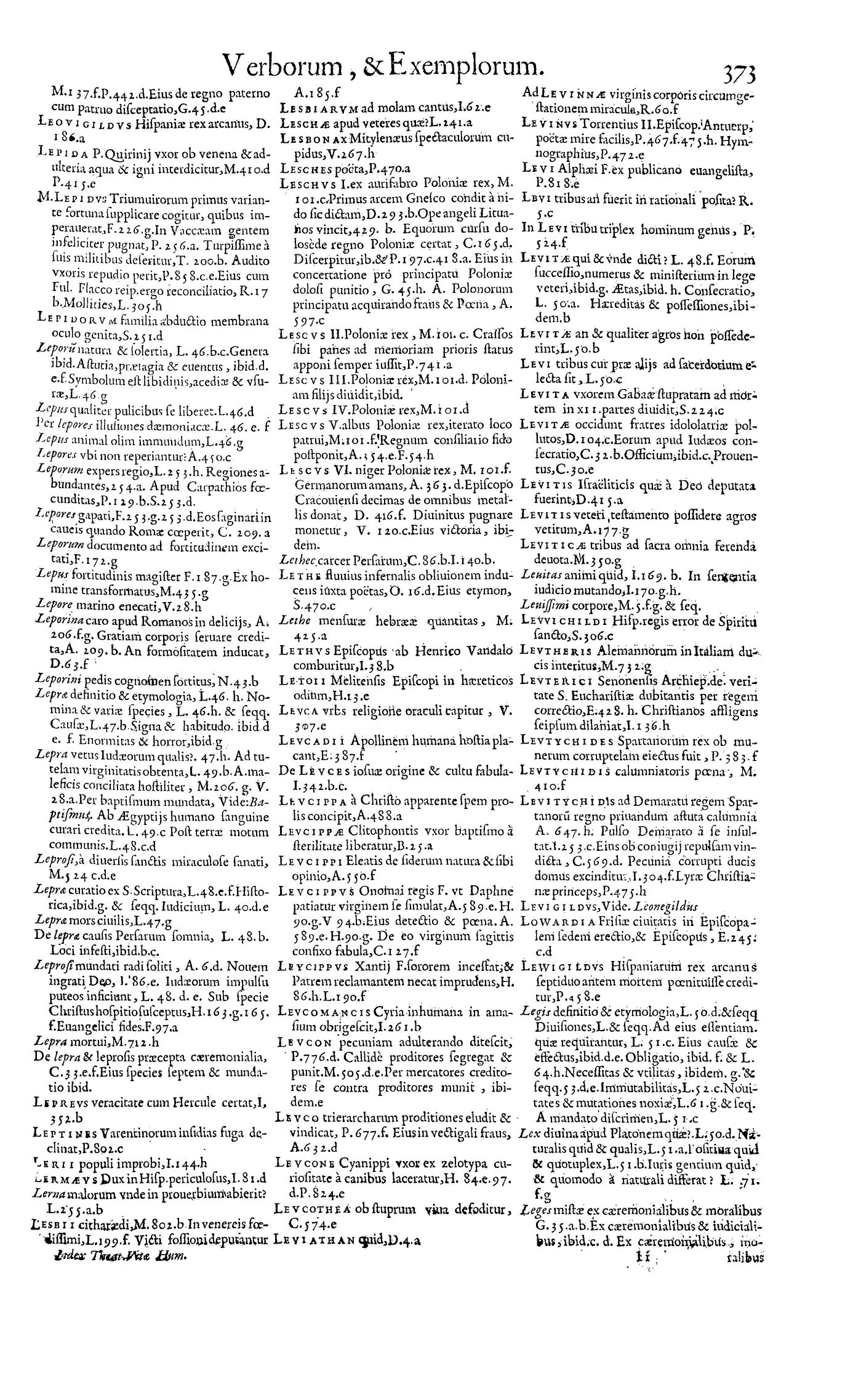 Parte de Magni theatri vitae humanae ... Index generalis rerum, verborum, historiarum [et] exemplorum omnium, quae in VII praecedentibus tomis comprehenduntur