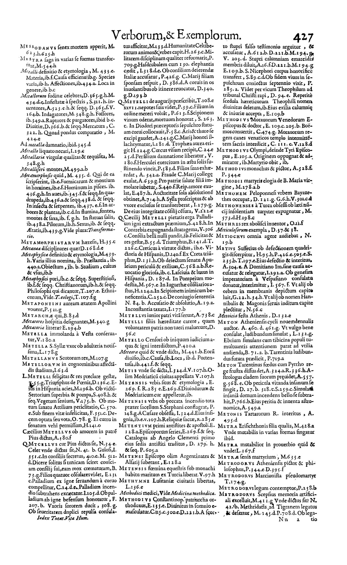 Parte de Magni theatri vitae humanae ... Index generalis rerum, verborum, historiarum [et] exemplorum omnium, quae in VII praecedentibus tomis comprehenduntur
