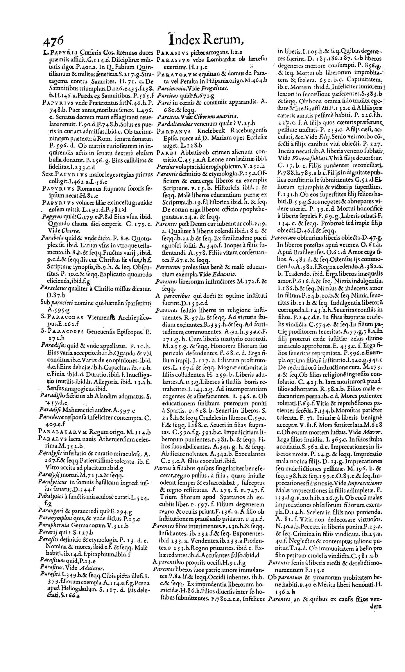 Parte de Magni theatri vitae humanae ... Index generalis rerum, verborum, historiarum [et] exemplorum omnium, quae in VII praecedentibus tomis comprehenduntur