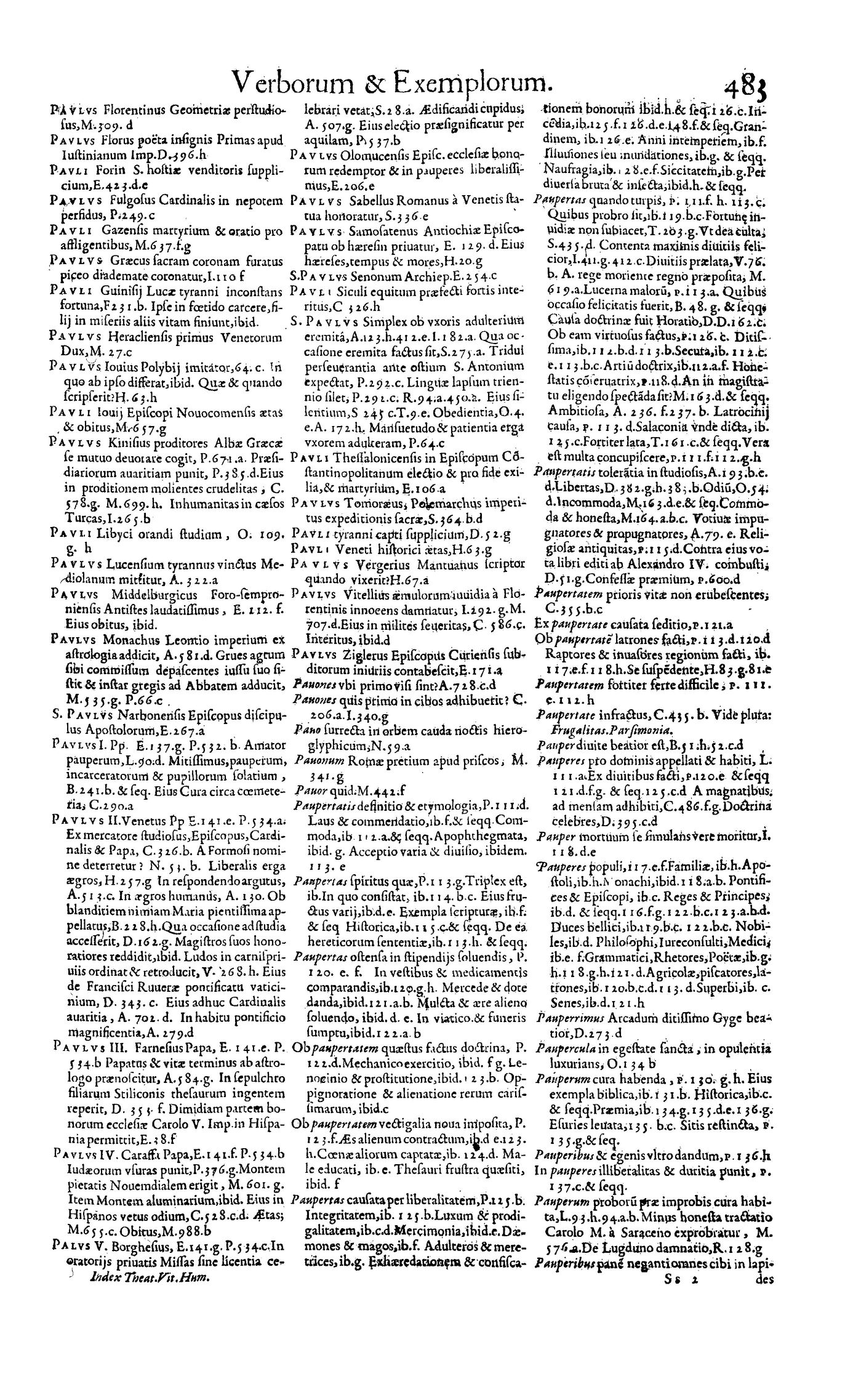 Parte de Magni theatri vitae humanae ... Index generalis rerum, verborum, historiarum [et] exemplorum omnium, quae in VII praecedentibus tomis comprehenduntur