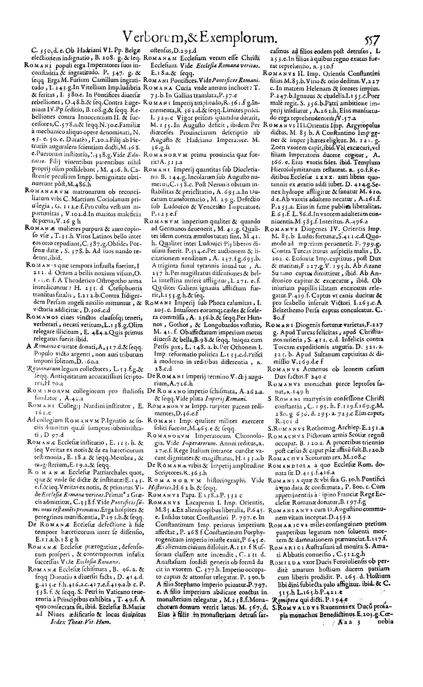 Parte de Magni theatri vitae humanae ... Index generalis rerum, verborum, historiarum [et] exemplorum omnium, quae in VII praecedentibus tomis comprehenduntur