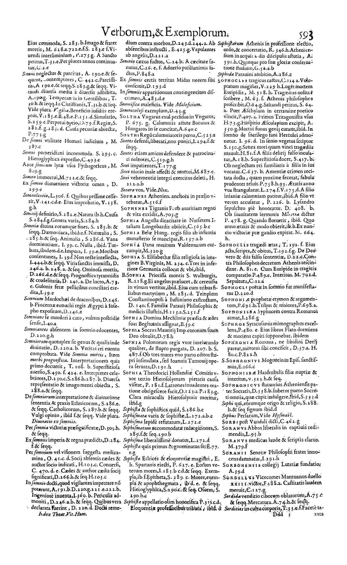 Parte de Magni theatri vitae humanae ... Index generalis rerum, verborum, historiarum [et] exemplorum omnium, quae in VII praecedentibus tomis comprehenduntur