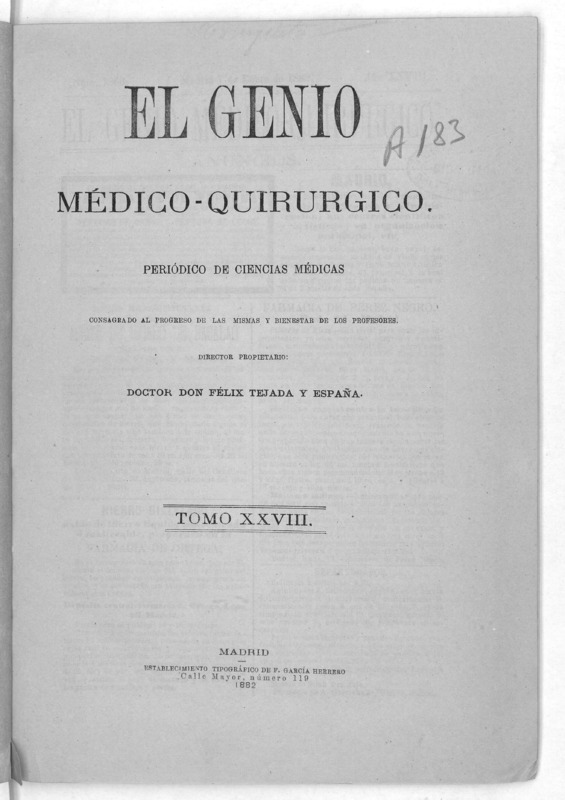 Parte de El Genio médico-quirúrgico : periódico de ciencias médicas ‐ [1882, Vol. 28, n. 1366-1393, 1340-1359.]