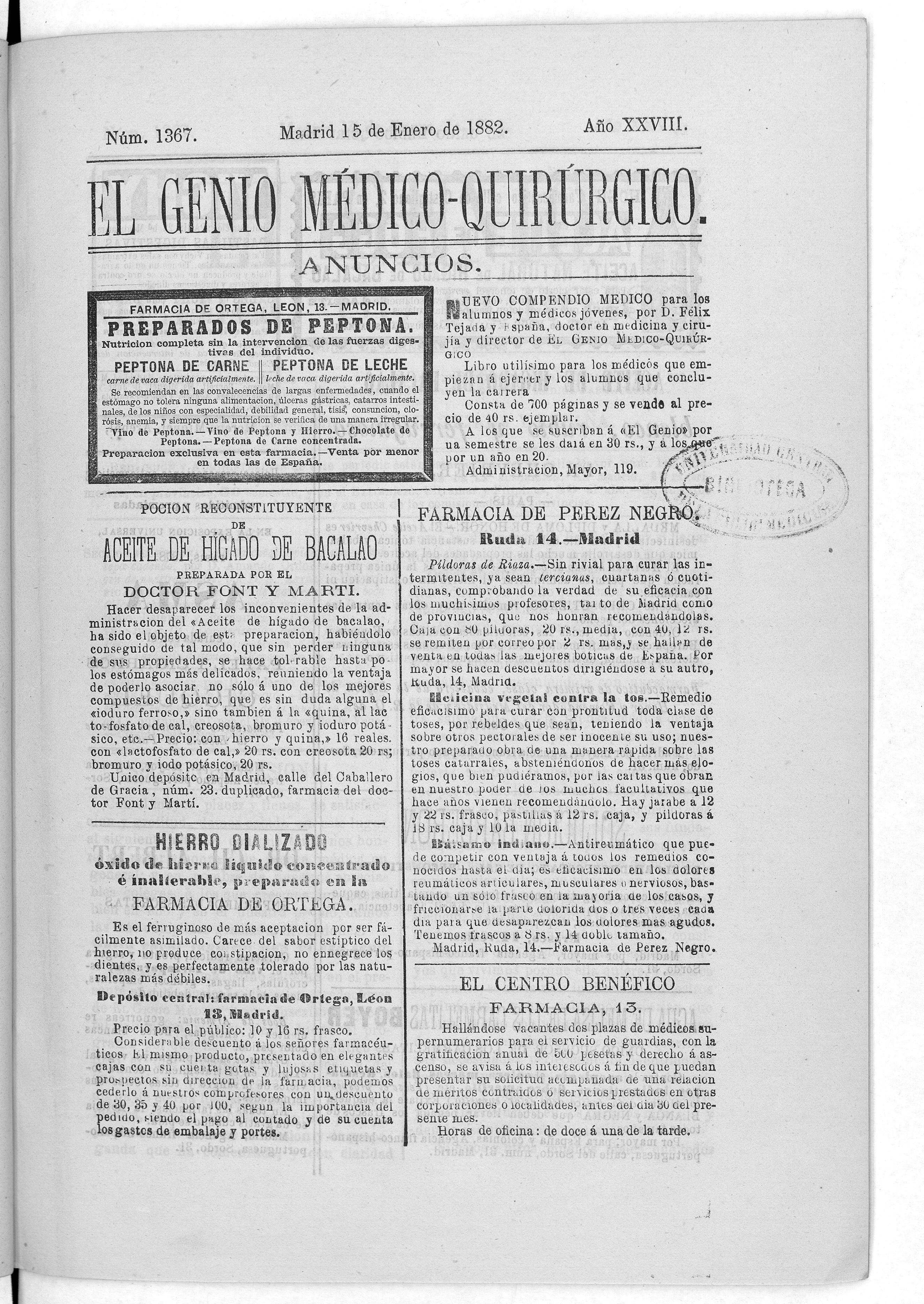 Parte de El Genio médico-quirúrgico : periódico de ciencias médicas ‐ [1882, Vol. 28, n. 1366-1393, 1340-1359.]