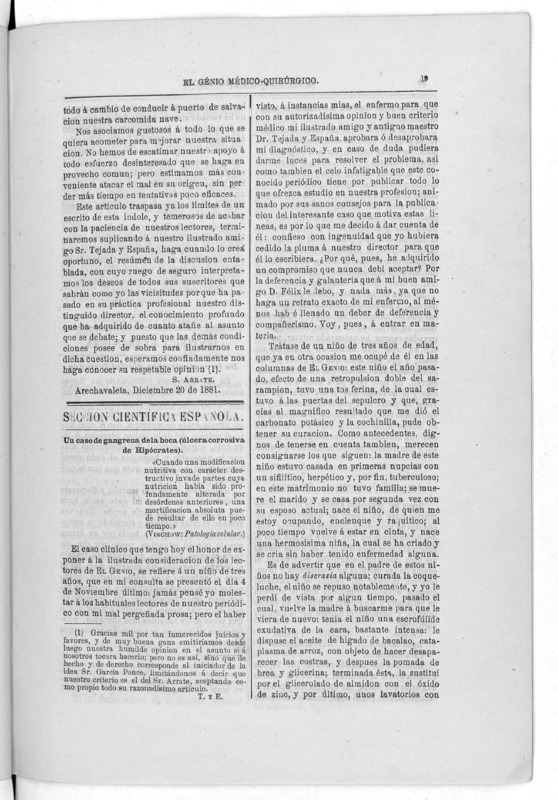 Parte de El Genio médico-quirúrgico : periódico de ciencias médicas ‐ [1882, Vol. 28, n. 1366-1393, 1340-1359.]