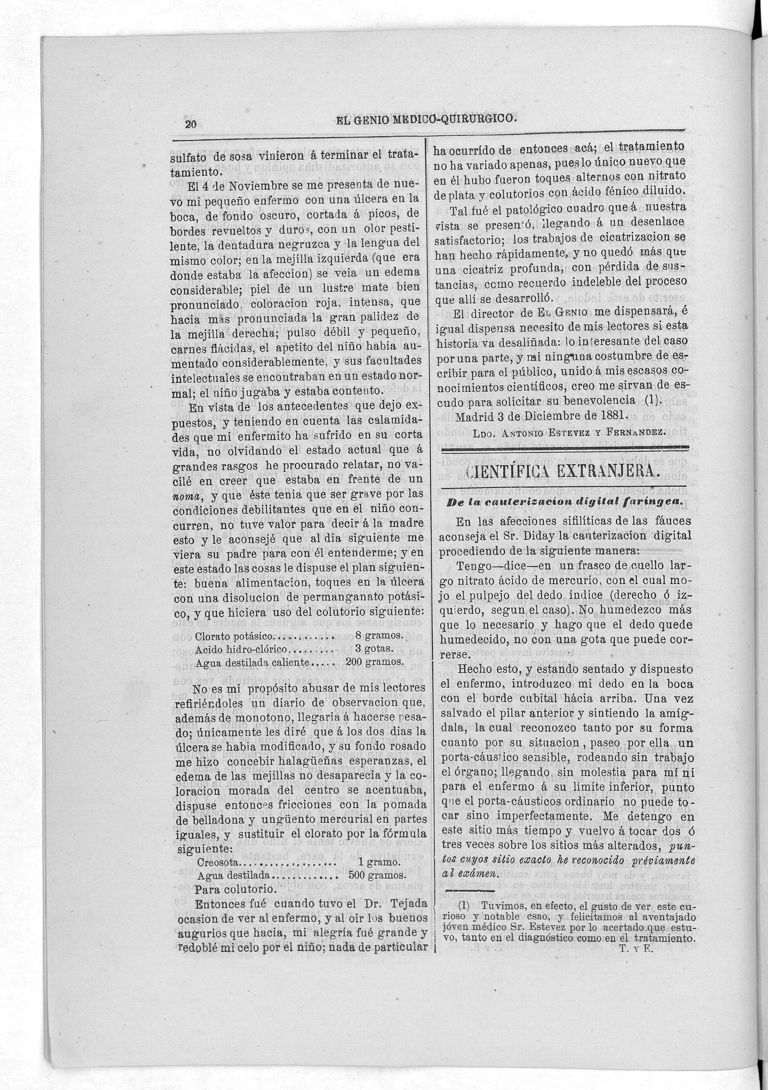 Parte de El Genio médico-quirúrgico : periódico de ciencias médicas ‐ [1882, Vol. 28, n. 1366-1393, 1340-1359.]