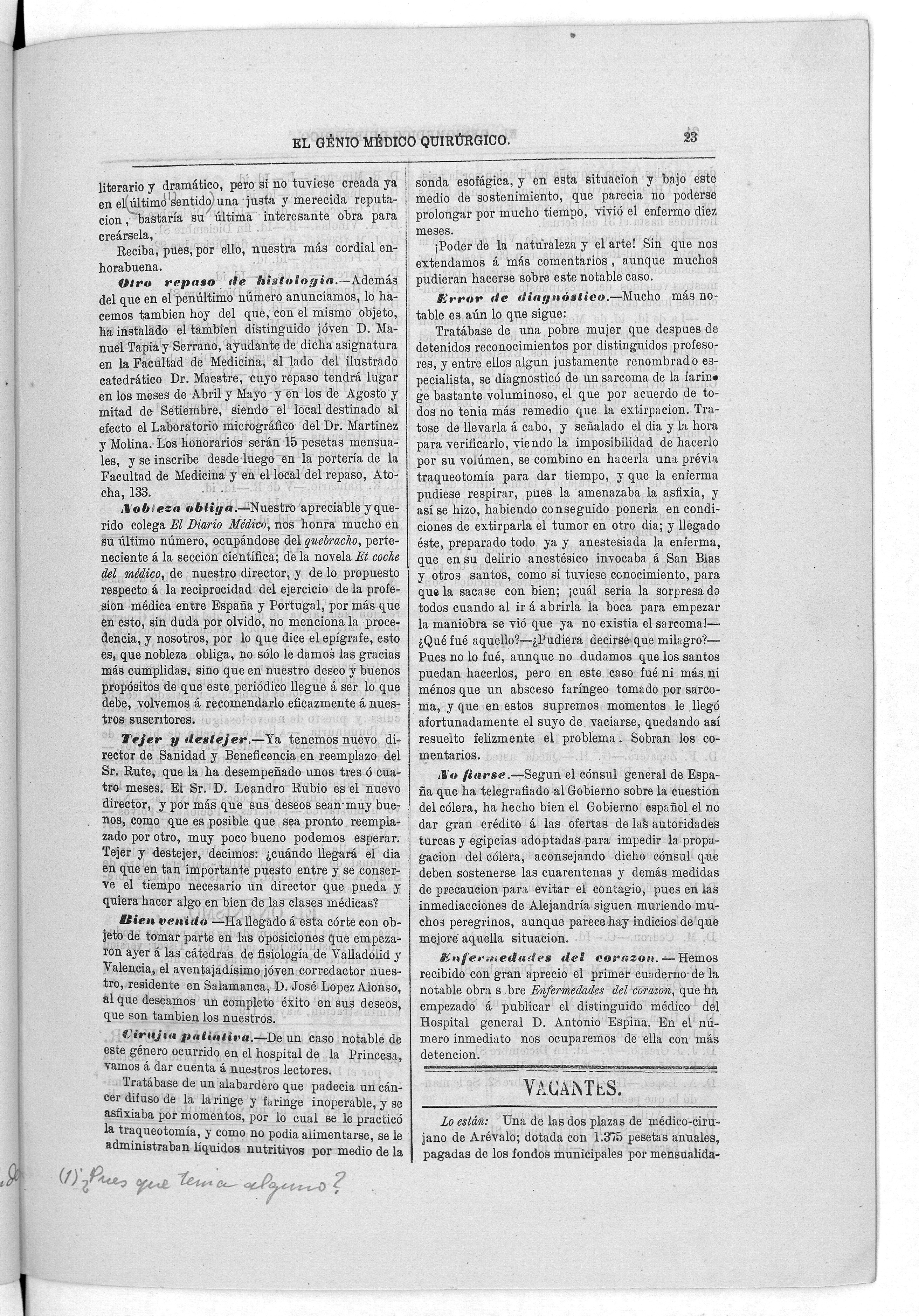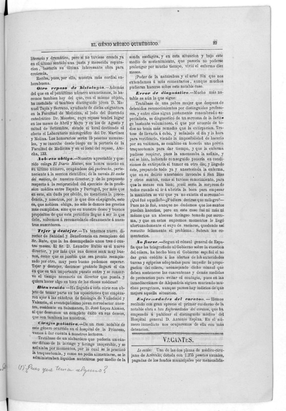 Parte de El Genio médico-quirúrgico : periódico de ciencias médicas ‐ [1882, Vol. 28, n. 1366-1393, 1340-1359.]