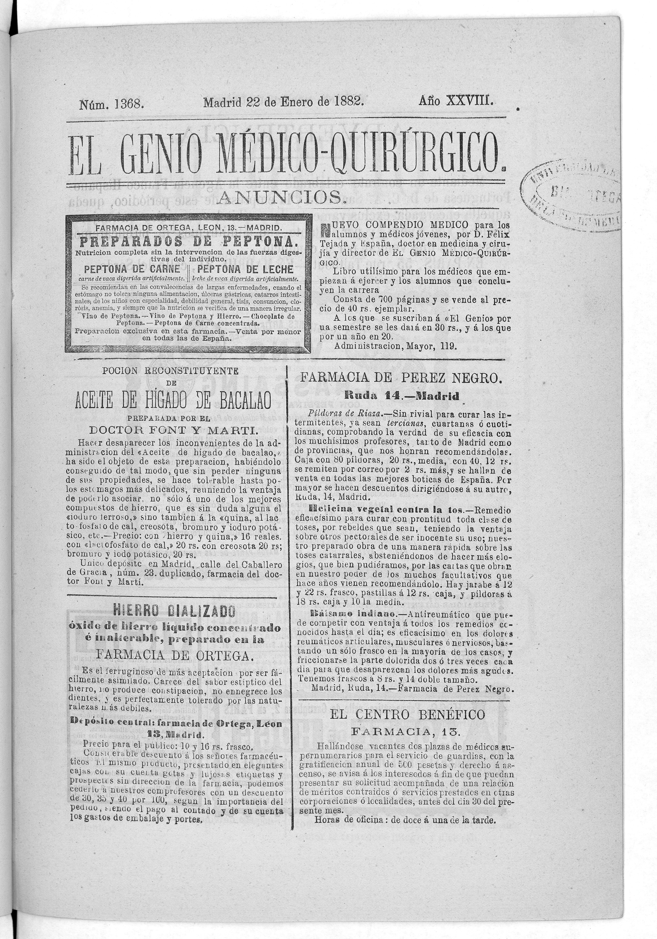Parte de El Genio médico-quirúrgico : periódico de ciencias médicas ‐ [1882, Vol. 28, n. 1366-1393, 1340-1359.]