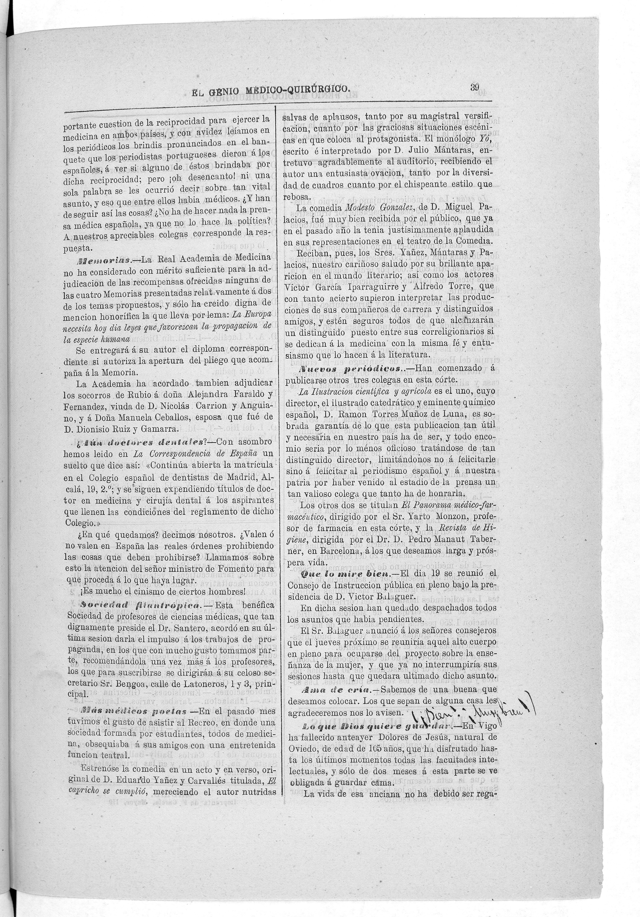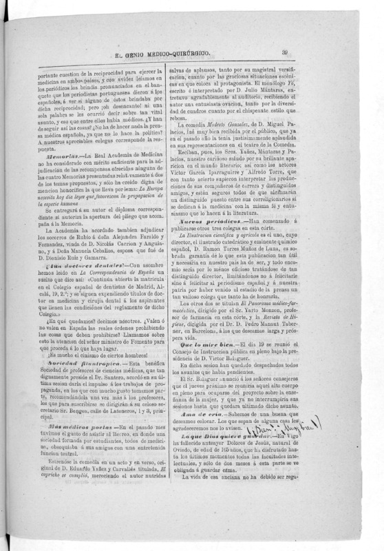 Parte de El Genio médico-quirúrgico : periódico de ciencias médicas ‐ [1882, Vol. 28, n. 1366-1393, 1340-1359.]