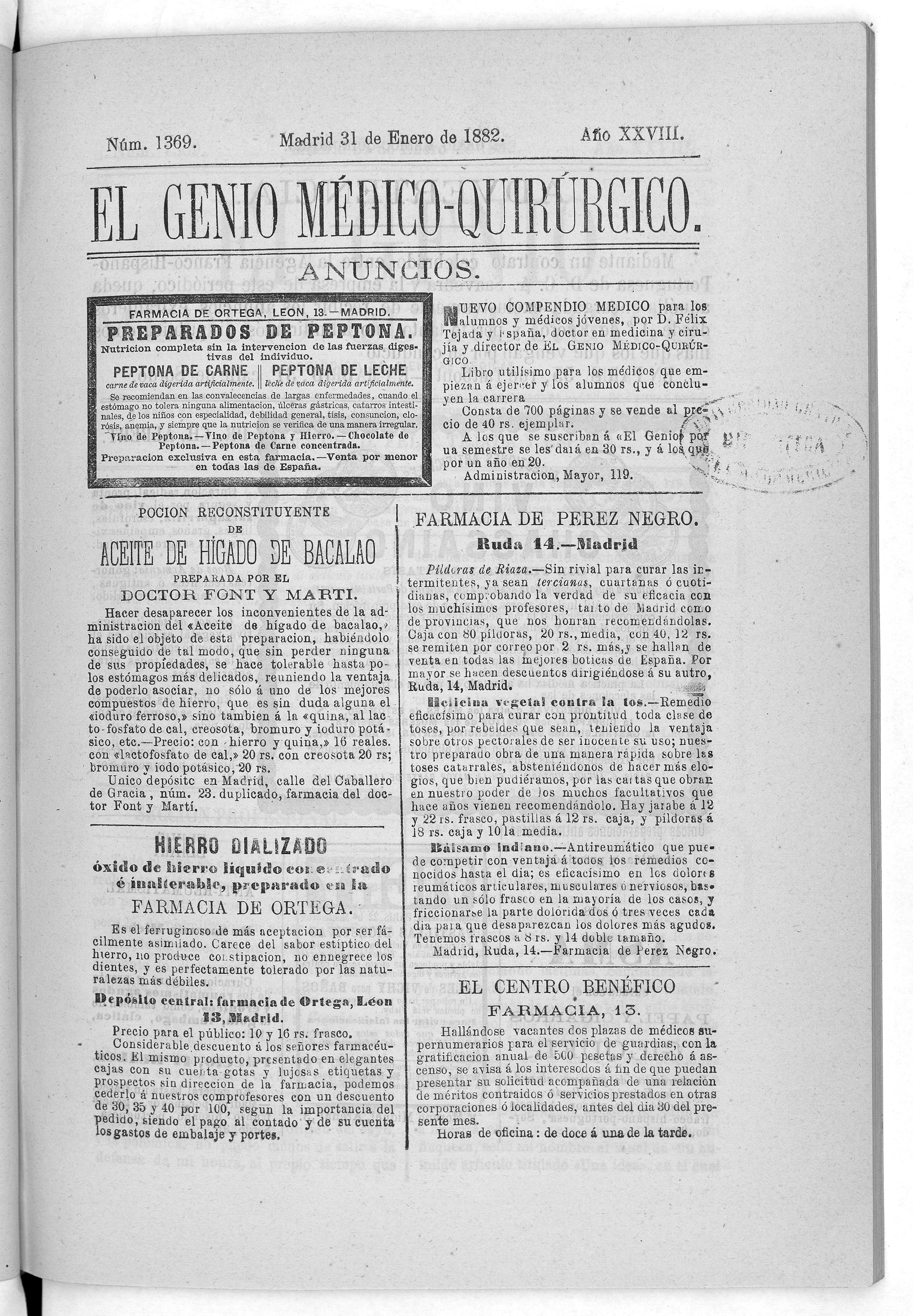 Parte de El Genio médico-quirúrgico : periódico de ciencias médicas ‐ [1882, Vol. 28, n. 1366-1393, 1340-1359.]