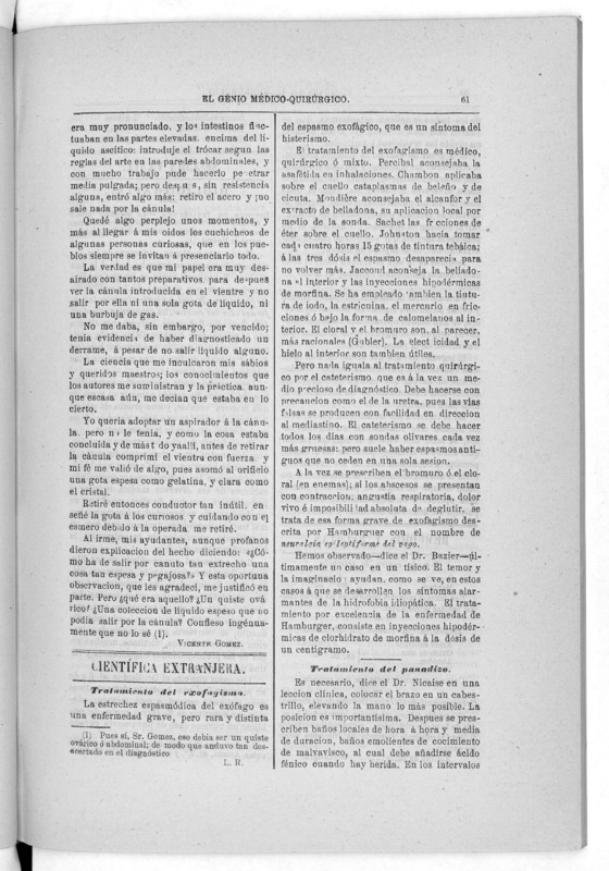 Parte de El Genio médico-quirúrgico : periódico de ciencias médicas ‐ [1882, Vol. 28, n. 1366-1393, 1340-1359.]