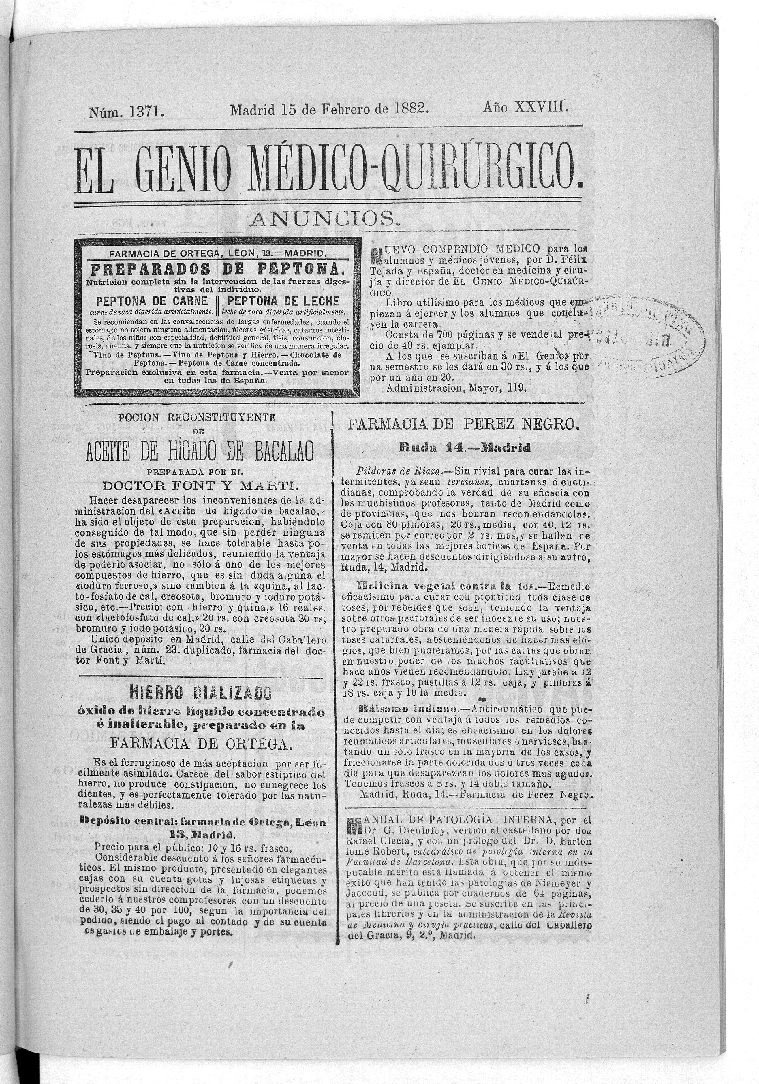 Parte de El Genio médico-quirúrgico : periódico de ciencias médicas ‐ [1882, Vol. 28, n. 1366-1393, 1340-1359.]