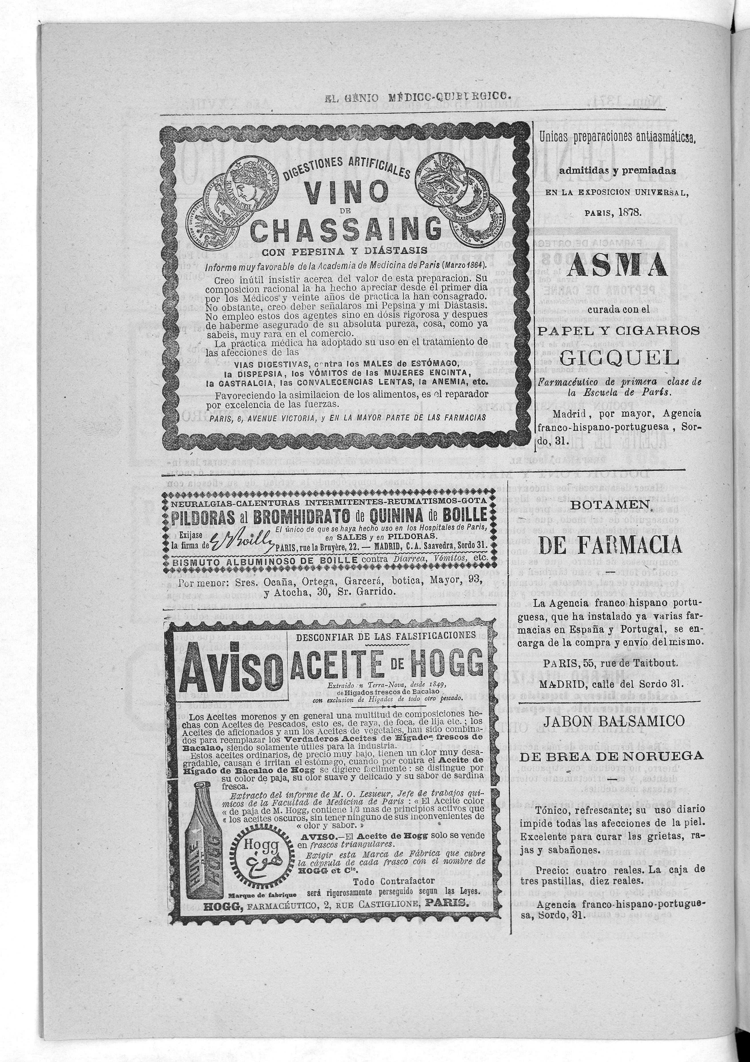 Parte de El Genio médico-quirúrgico : periódico de ciencias médicas ‐ [1882, Vol. 28, n. 1366-1393, 1340-1359.]