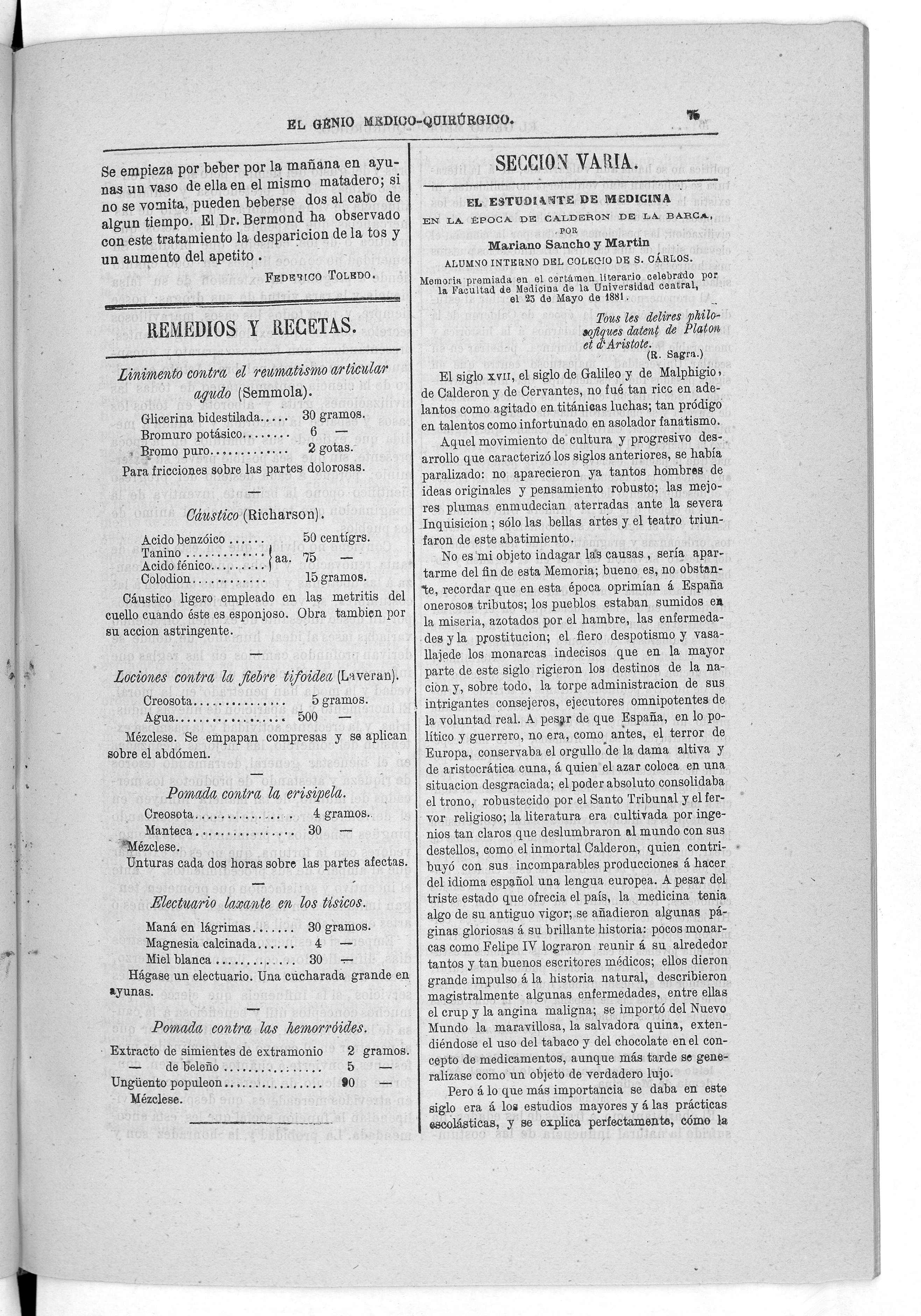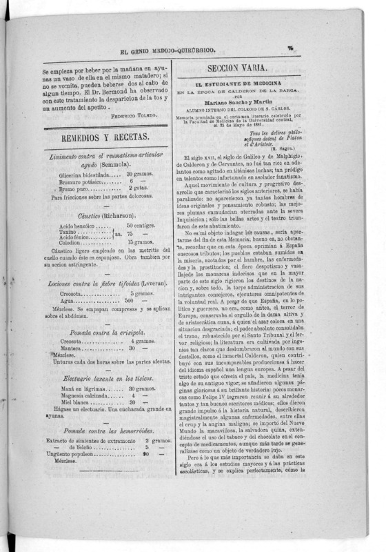 Parte de El Genio médico-quirúrgico : periódico de ciencias médicas ‐ [1882, Vol. 28, n. 1366-1393, 1340-1359.]
