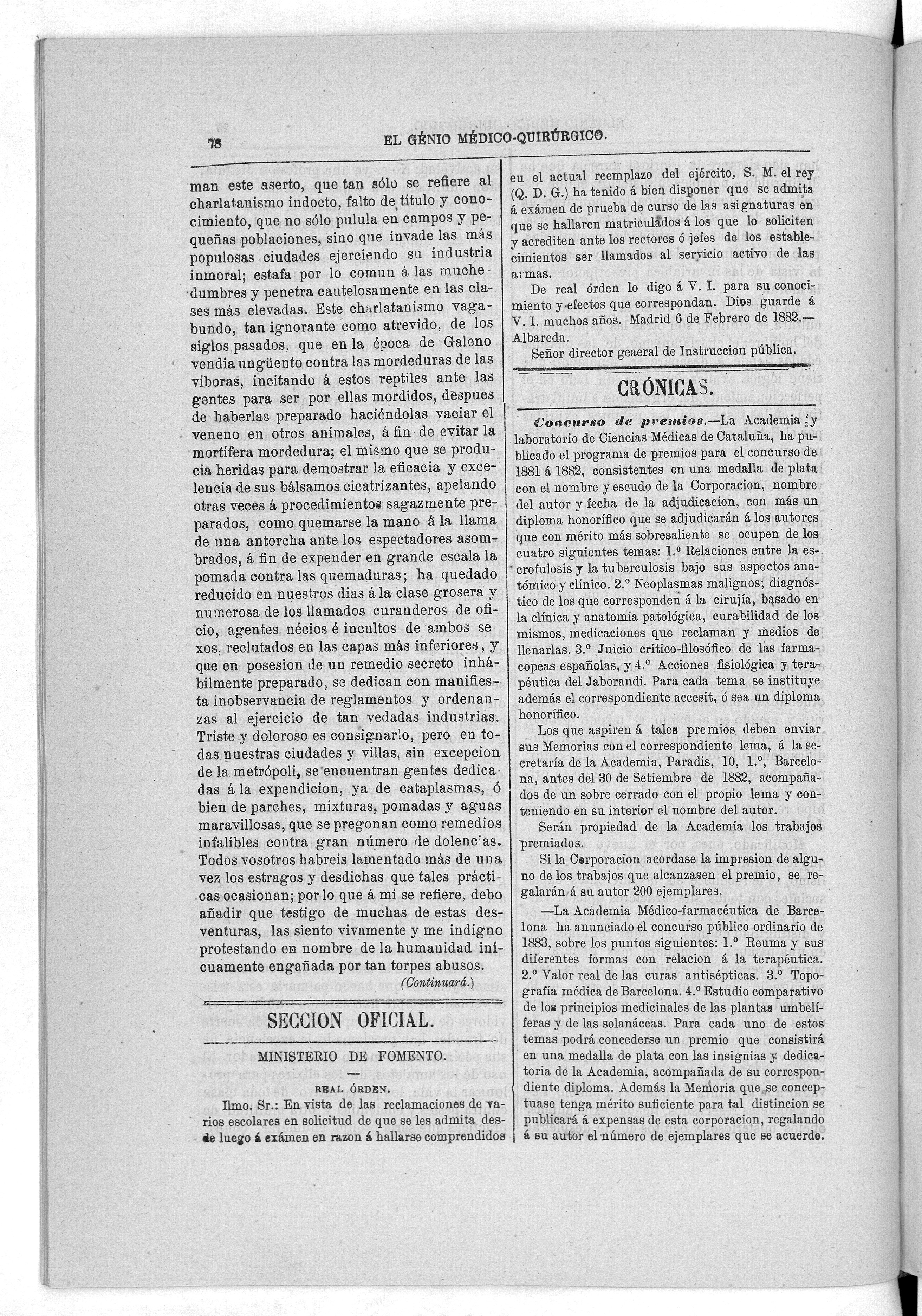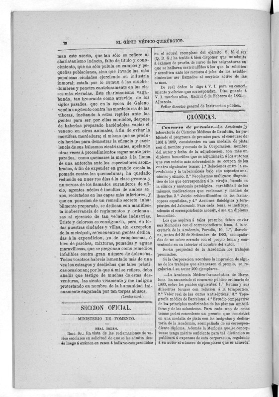Parte de El Genio médico-quirúrgico : periódico de ciencias médicas ‐ [1882, Vol. 28, n. 1366-1393, 1340-1359.]