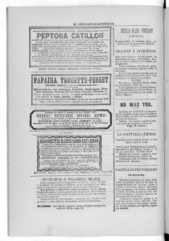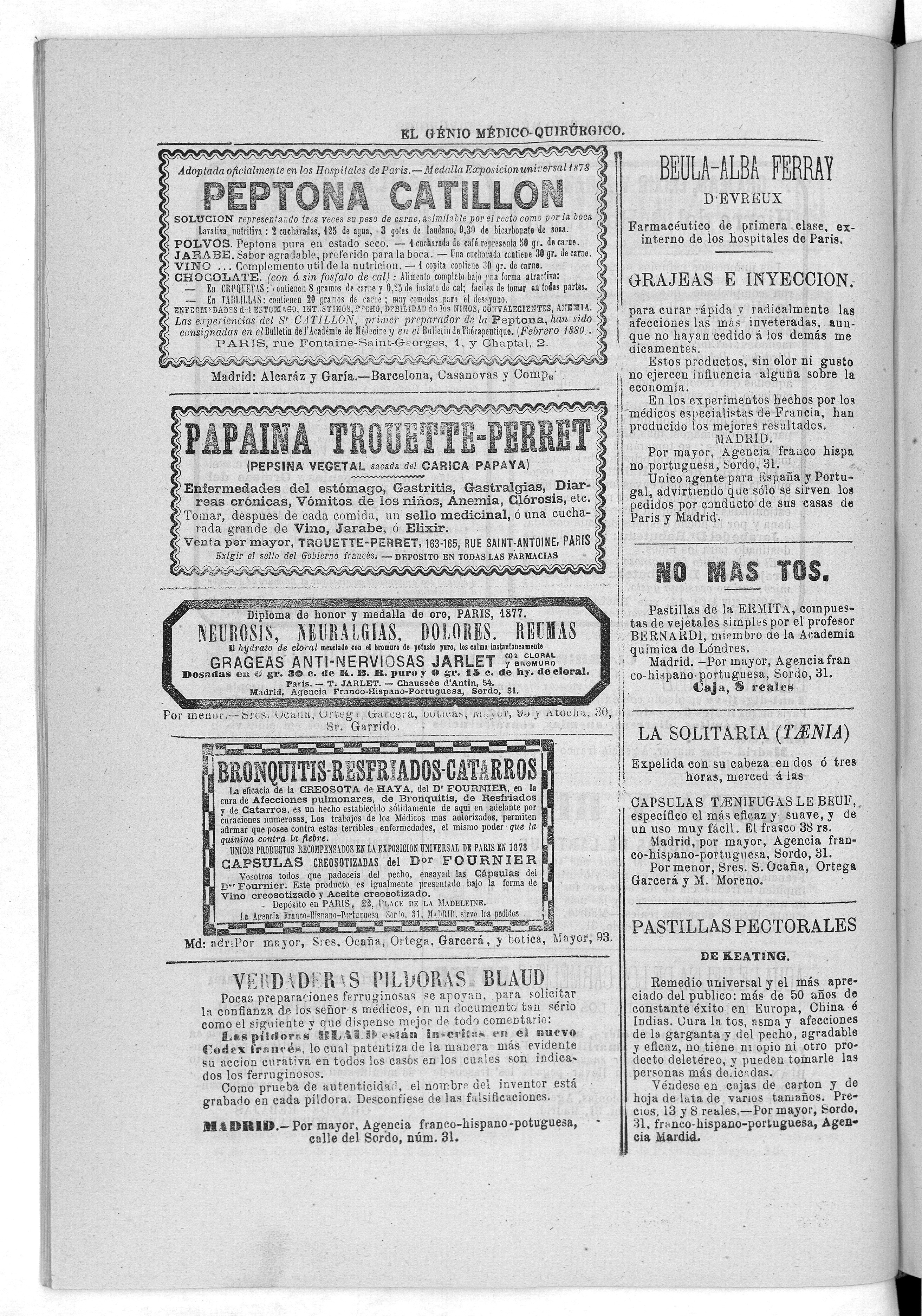 Parte de El Genio médico-quirúrgico : periódico de ciencias médicas ‐ [1882, Vol. 28, n. 1366-1393, 1340-1359.]