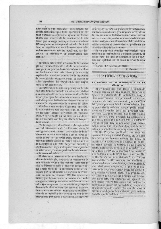 Parte de El Genio médico-quirúrgico : periódico de ciencias médicas ‐ [1882, Vol. 28, n. 1366-1393, 1340-1359.]